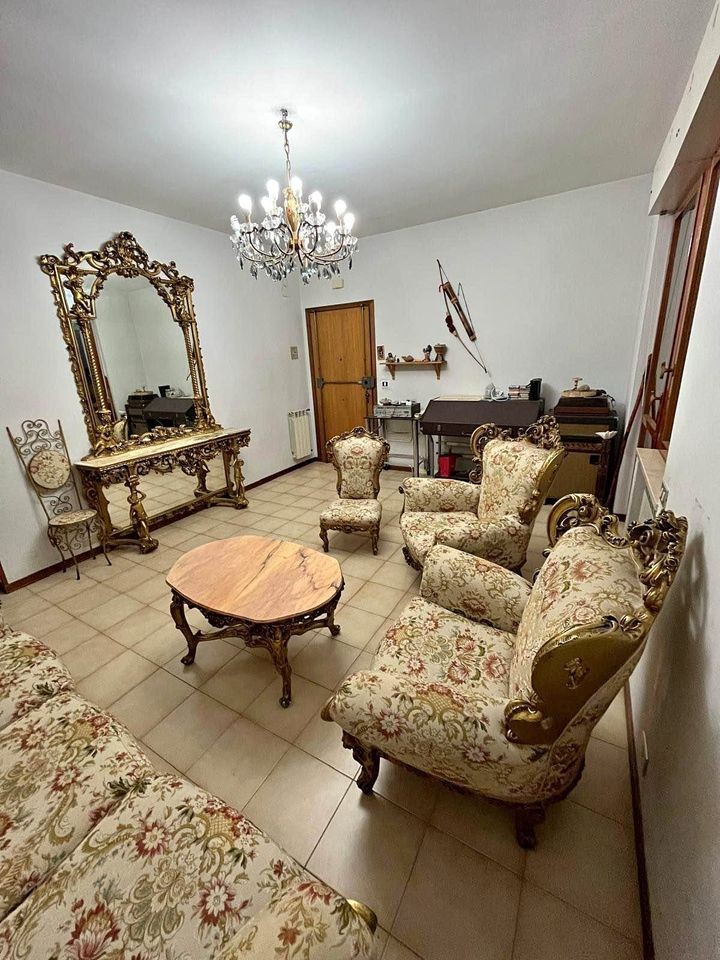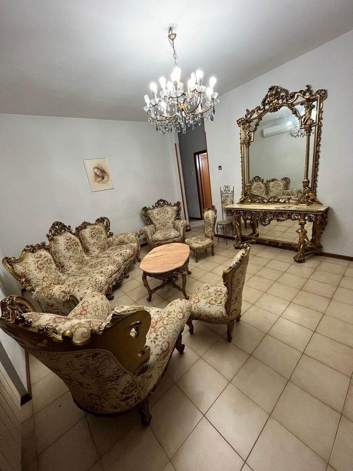 W skład kompletu wchodzą: sofa, 2 x fotel, 2 x krzesło, stolik do kawy, konsola.