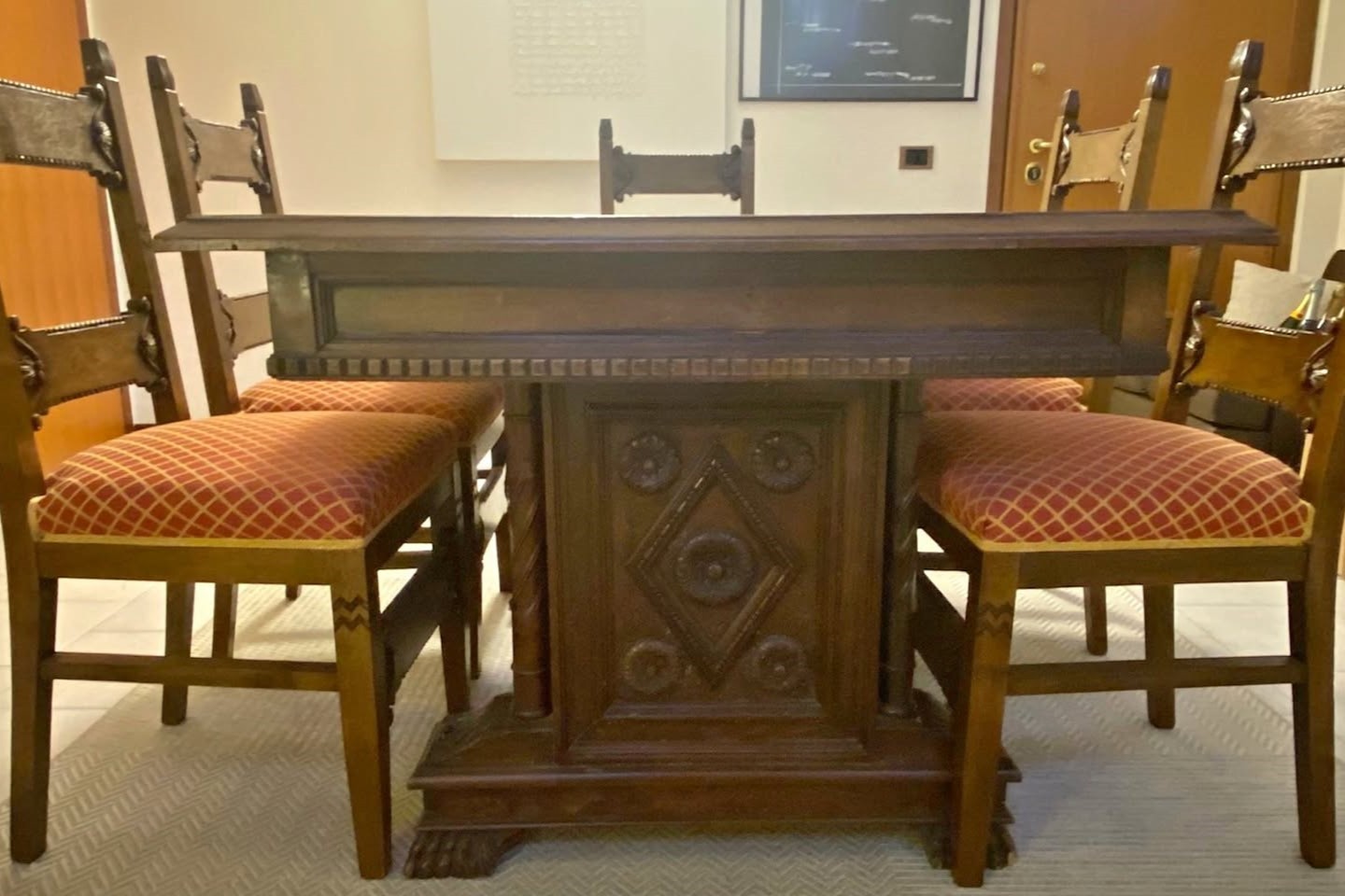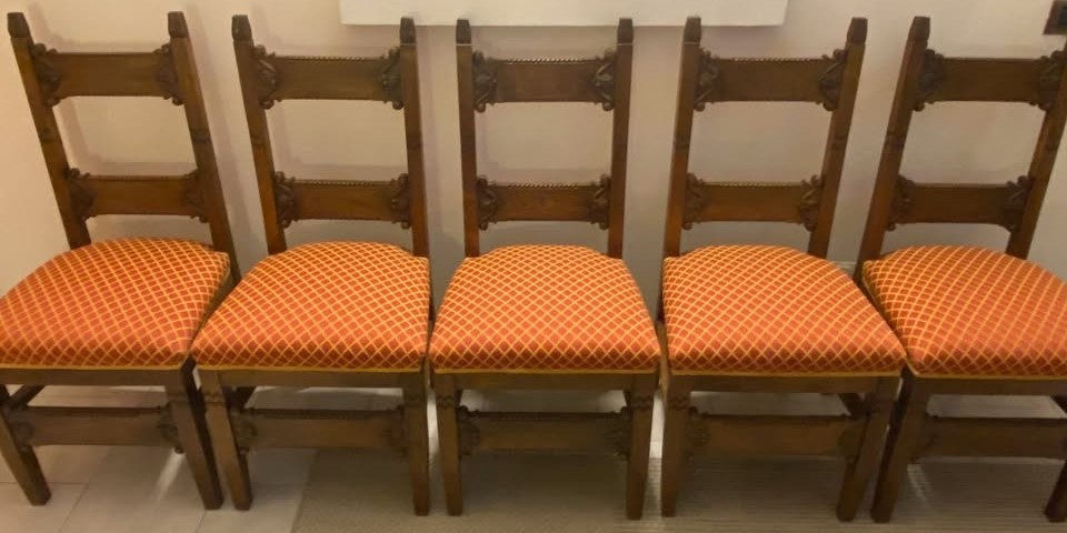 W skład kompletu z drewna wchodzi: stół, 5 x krzesło.