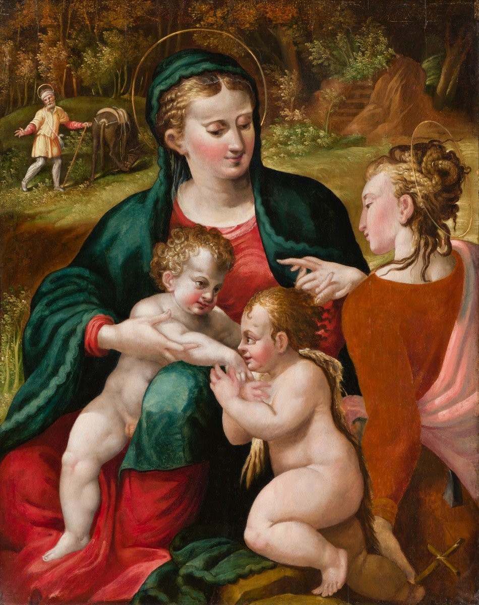 Odpoczynek podczas ucieczki do Egiptu ze św. Janem i Katarzyną.