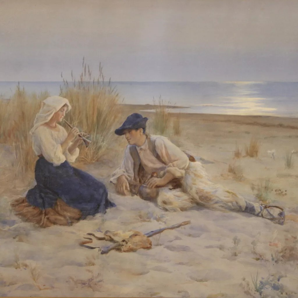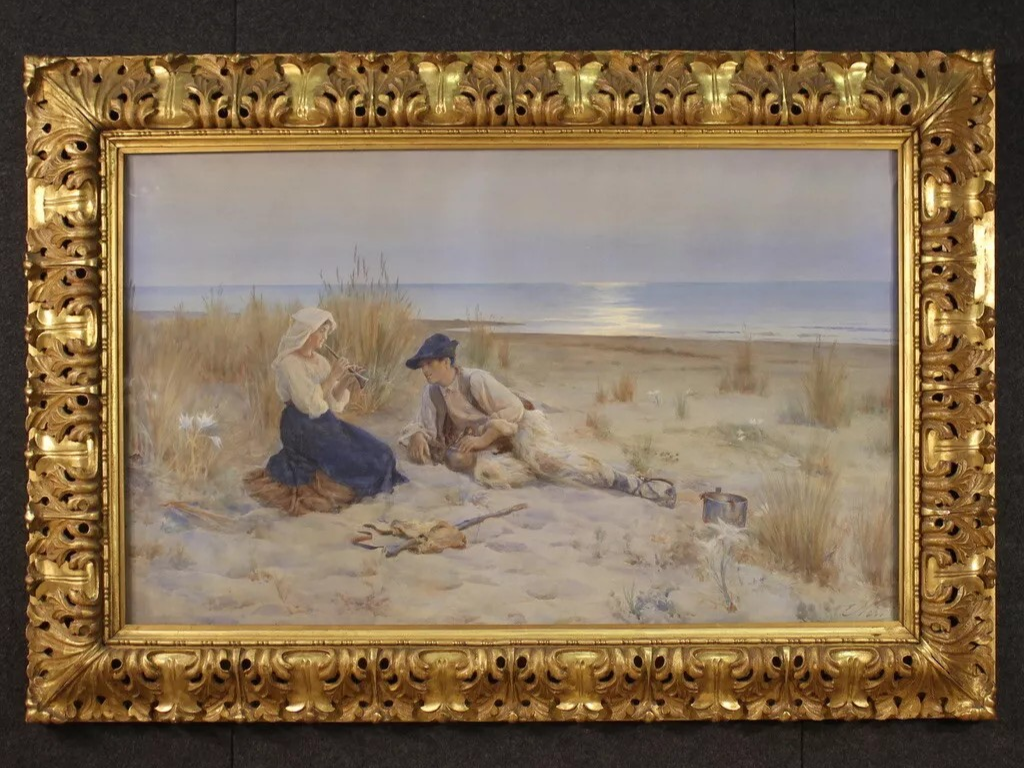 S1536 Wybrzeże z pasterzami, Akwarela, XX w.
