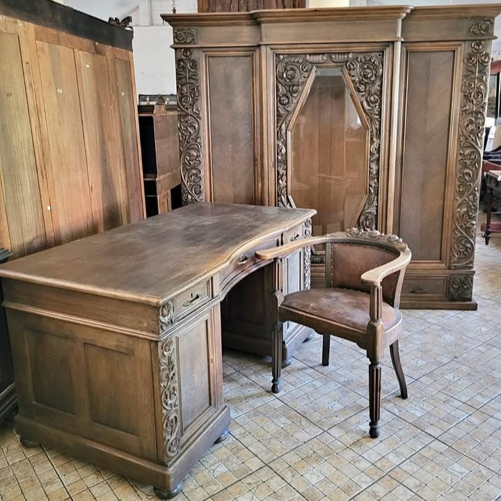 W skład kompletu wchodzi: biblioteka, biurko, fotel.