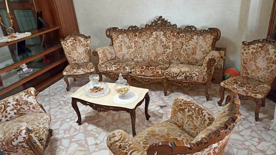 W skład kompletu wchodzą: sofa 3-osobowa, 2 x fotel, 2 x krzesło, stolik do kawy.