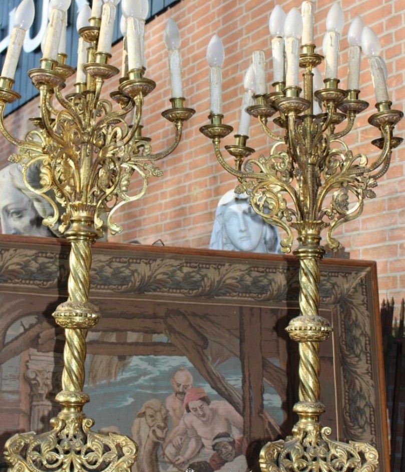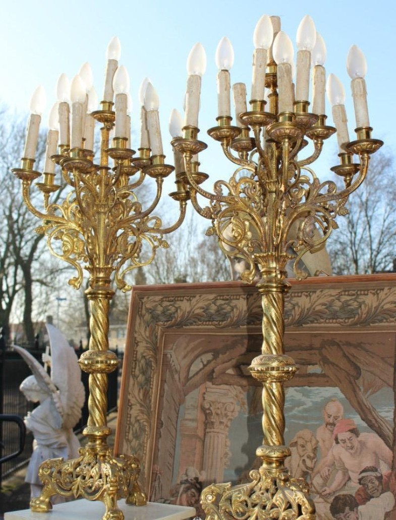 S1722 2 x Duży romański kandelabr, XIX w.