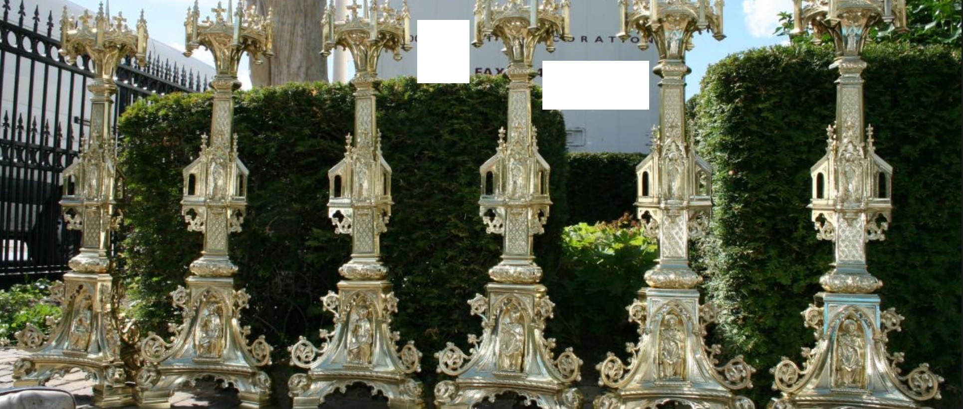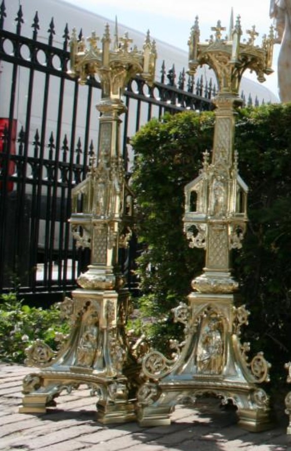 S1723 6 x Duży gotycki lichtarz, XIX w.