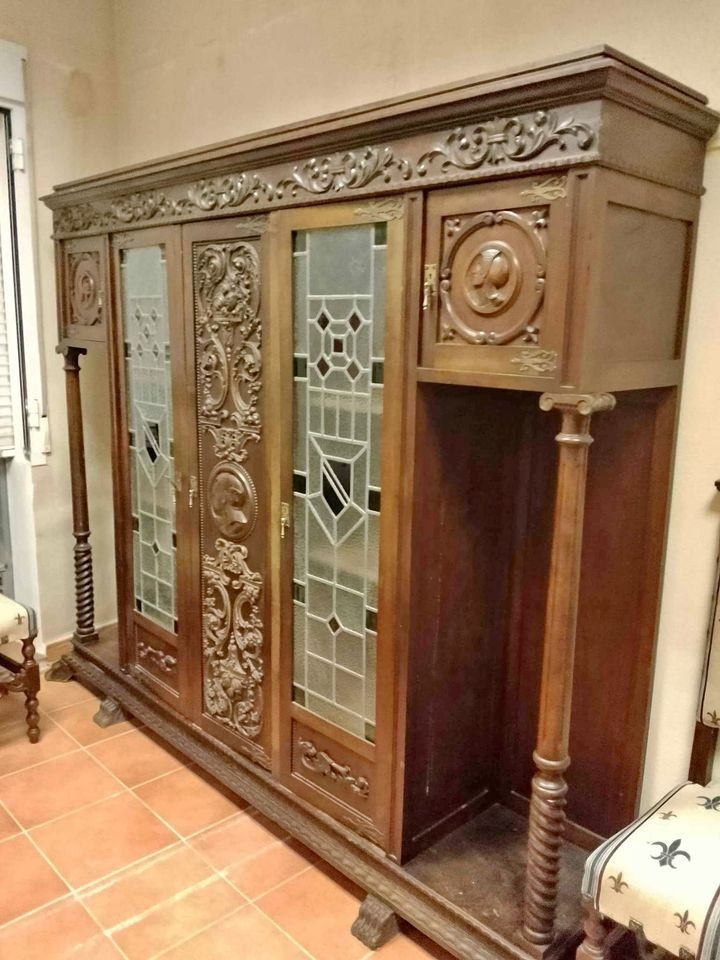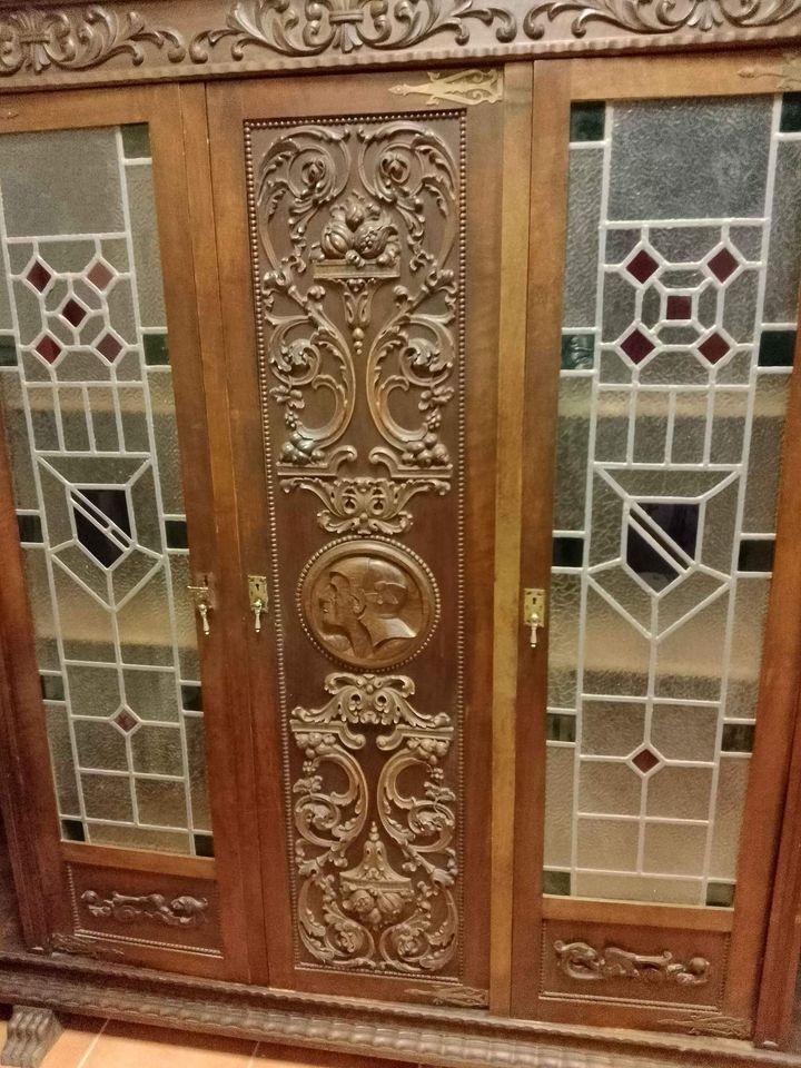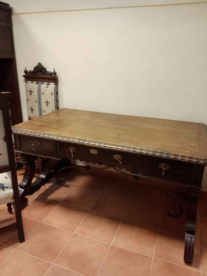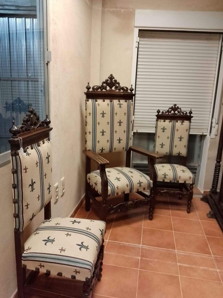 W skład zestawu wchodzą: stół, 4 x krzesło, fotel, biblioteka