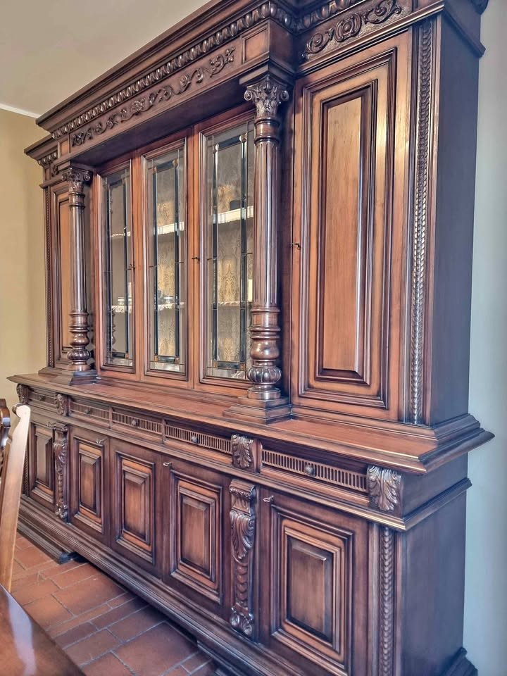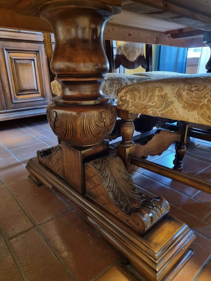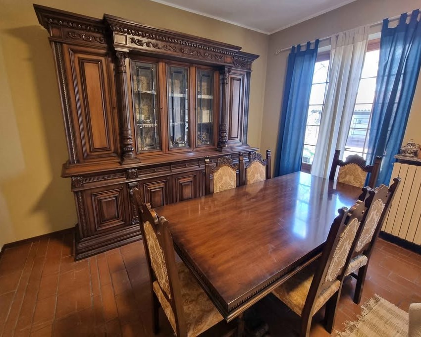 W skład kompletu wchodzi: kredens, stół, krzesła.