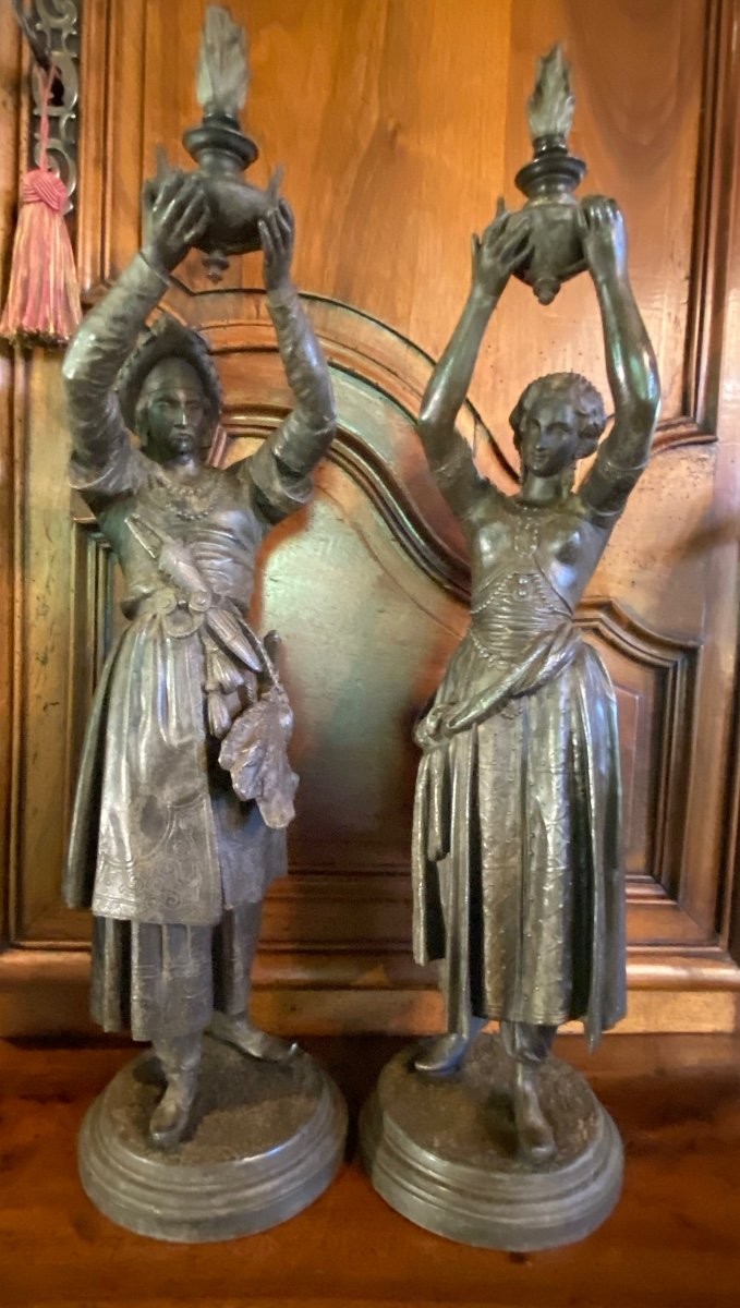 S1871 Para niosących pochodnie, Rzeźby/Lampy, XIX w.