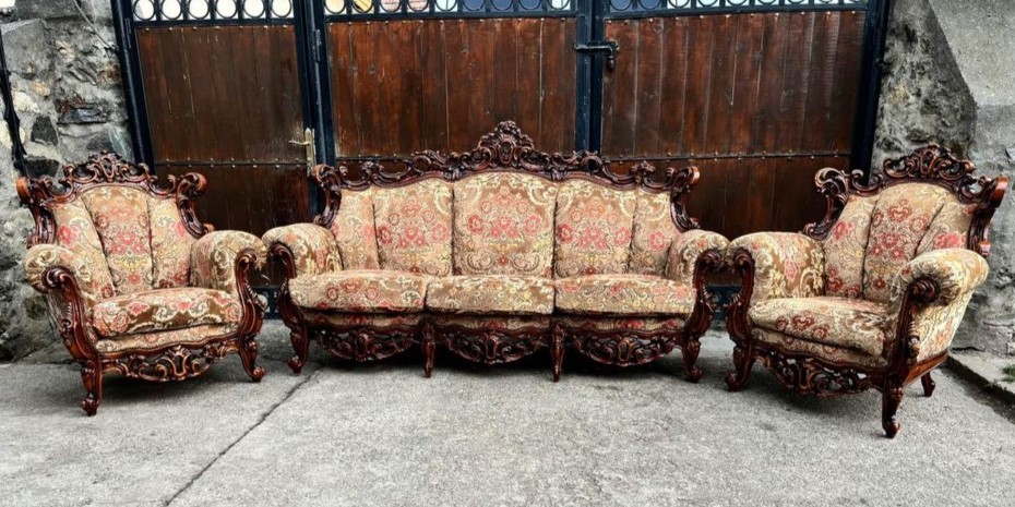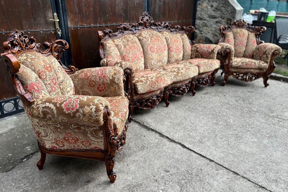 W skład kompletu wchodzi: sofa, 2 x fotel.