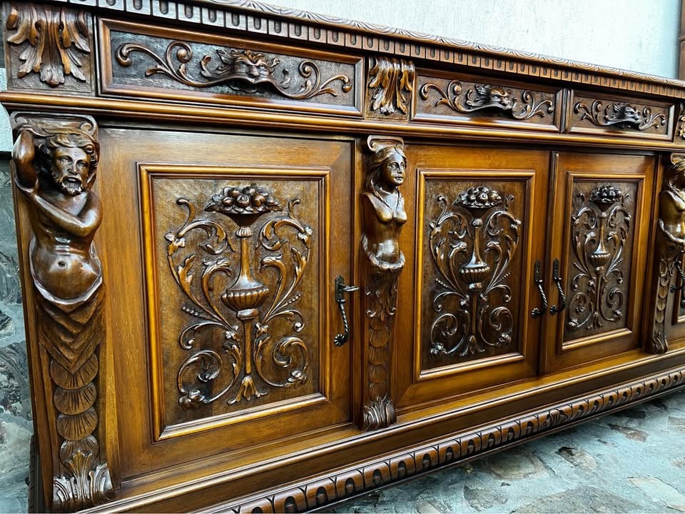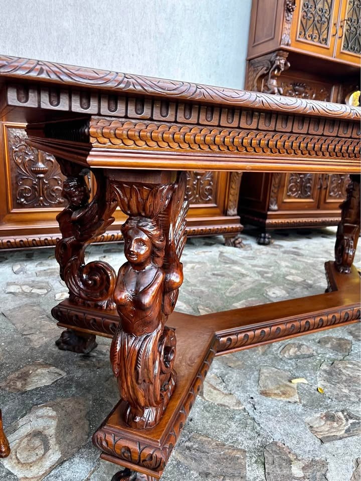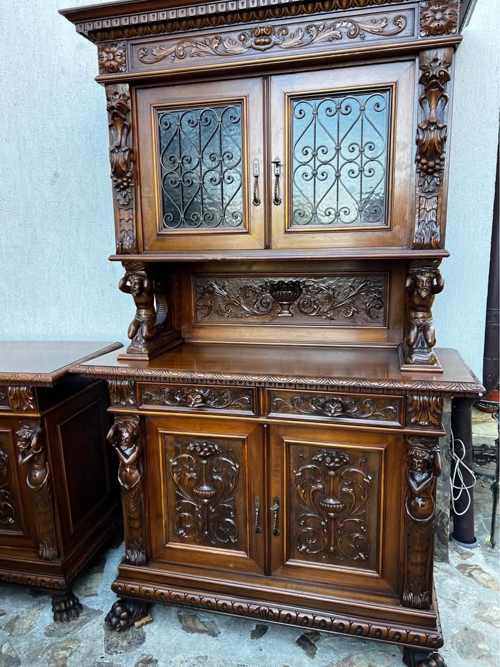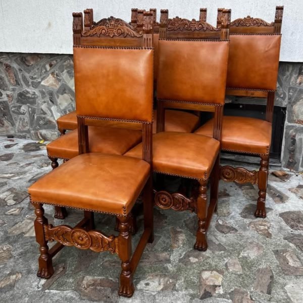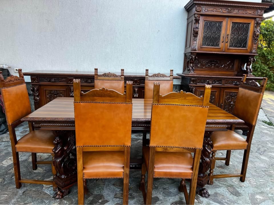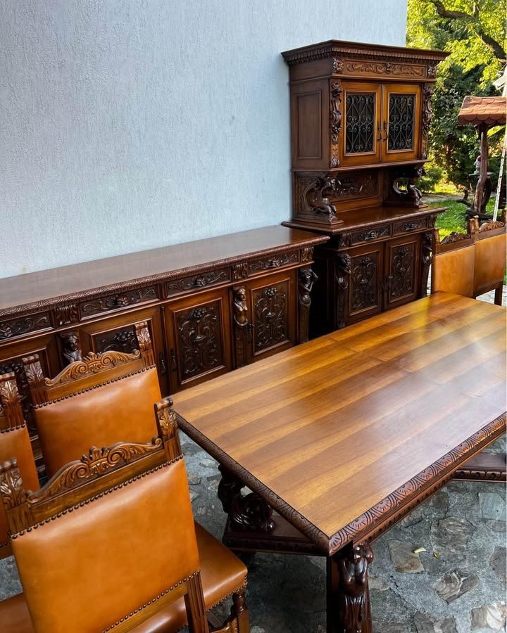 W skład kompletu z drewna wchodzi: kredens, bufet, stół, 6 x krzesło.