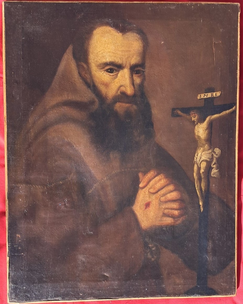 S2090 Święty Franciszek z Asyżu, Barokowy olej na płótnie, XVII w.