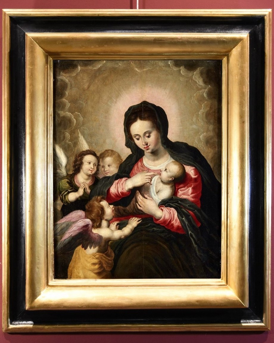 S2134 Madonna z Dzieciątkiem i aniołami, Olej na drewnie, XVII w.