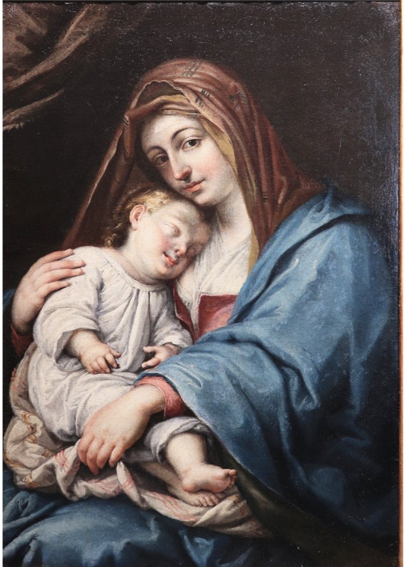 S2149 Madonna ze śpiącym Dzieciątkiem, Olej na płótnie, XVII w.