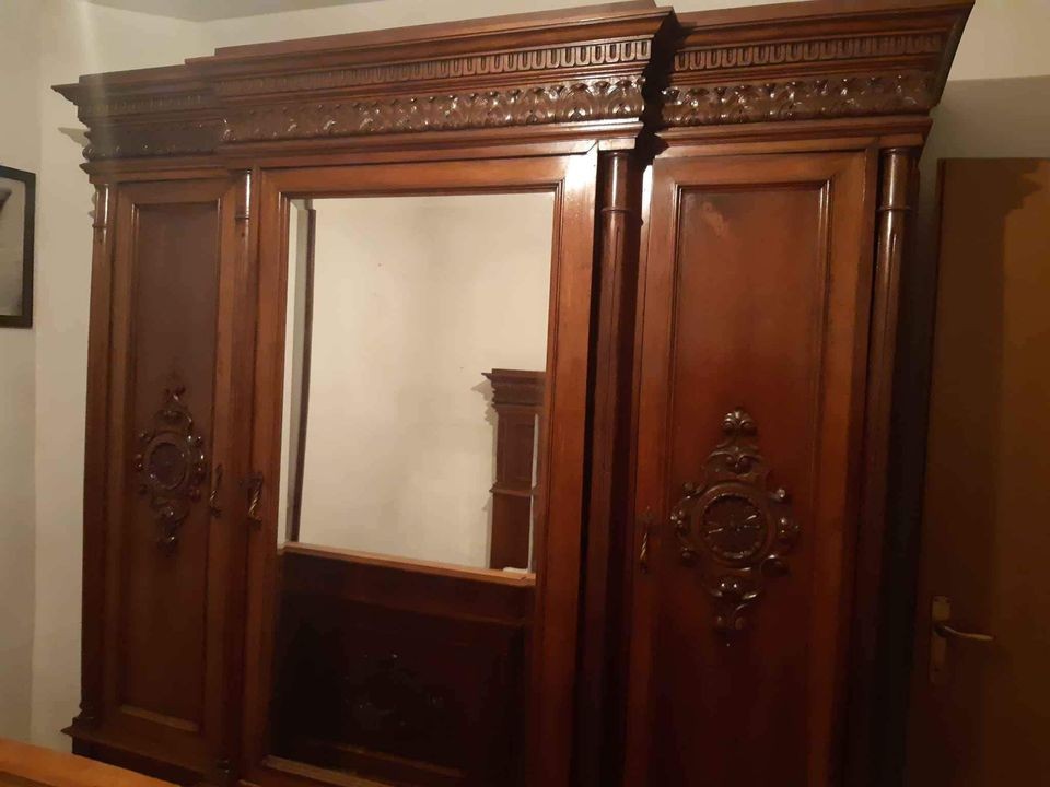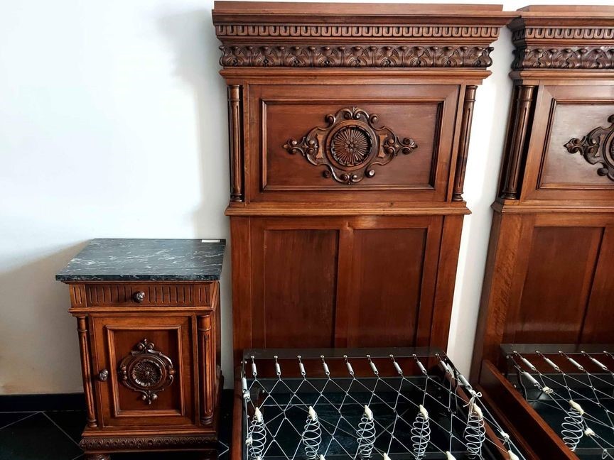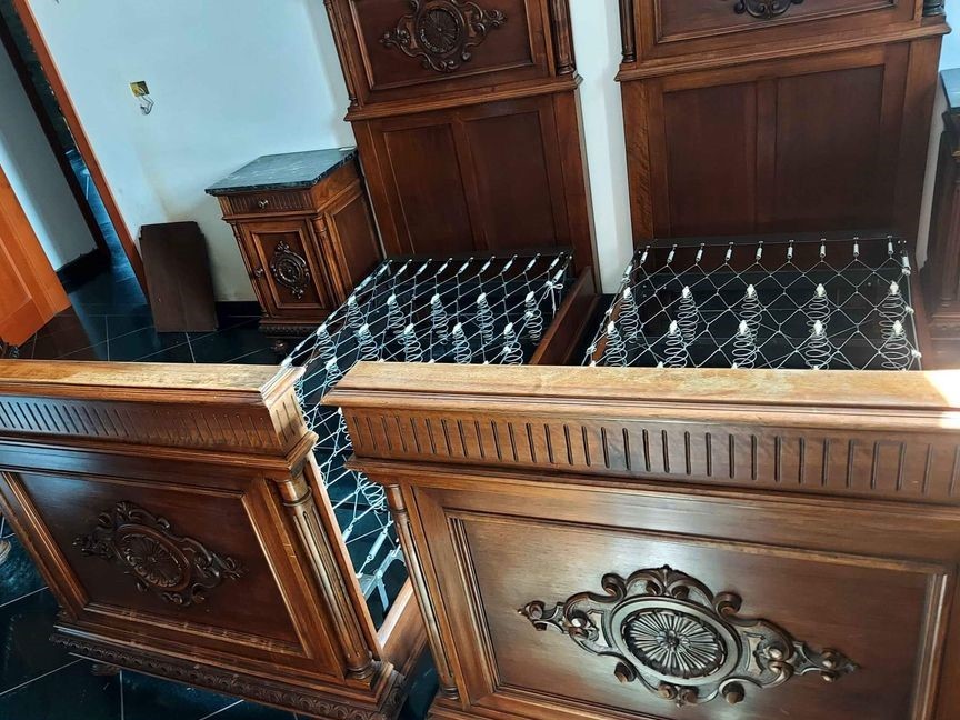 W skład kompletu wchodzi: 2 x łóżko, 2 x szafka nocna, szafa.