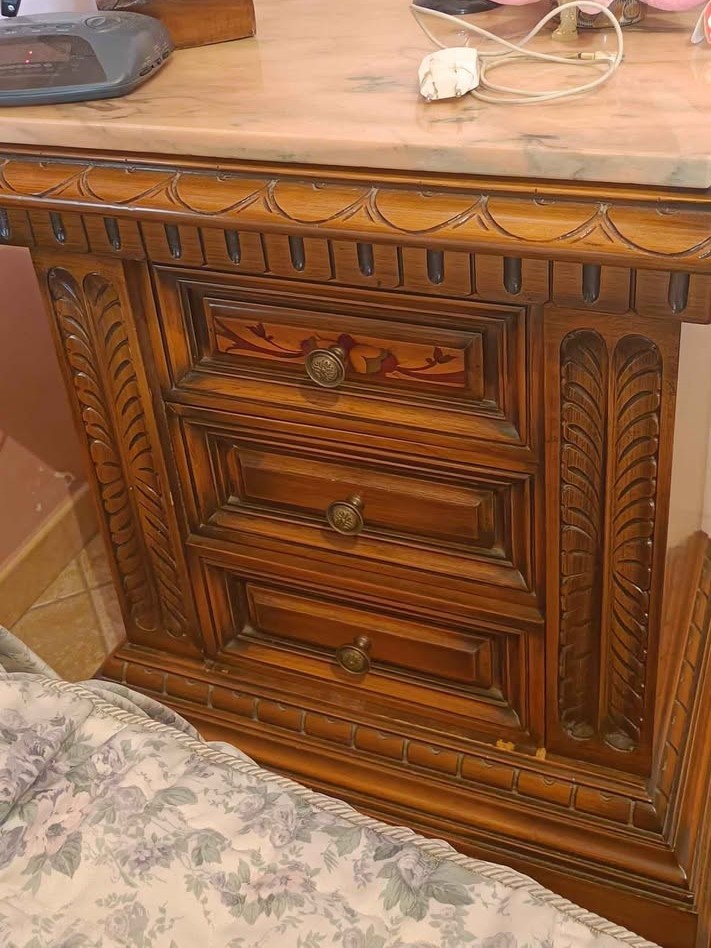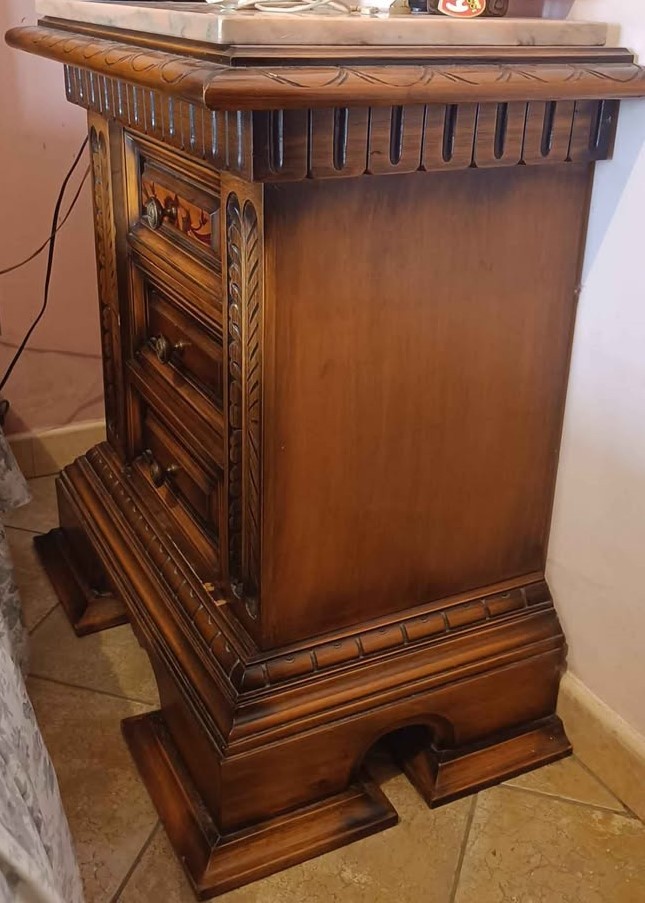 W skład kompletu wchodzi: łoże, szafa, komoda, 2 x szafka nocna, 2 x lampka nocna.