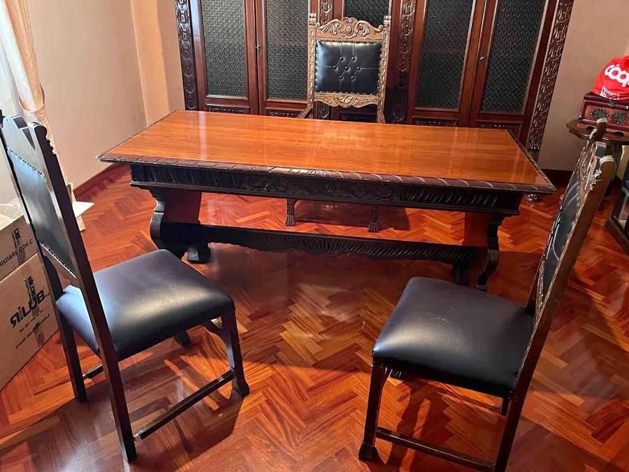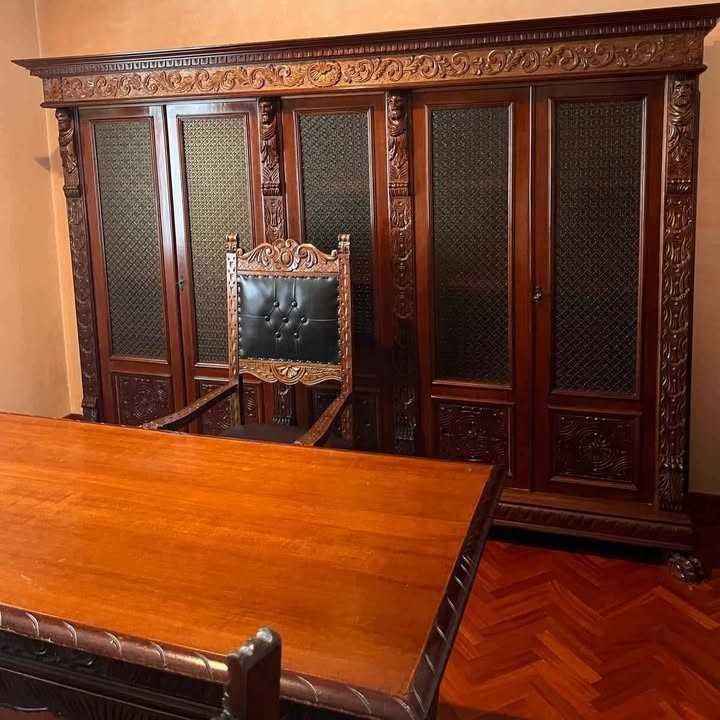 W skład kompletu wchodzi: biblioteka, biurko, krzesła.