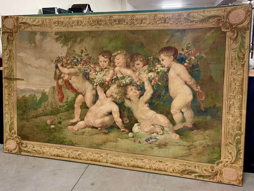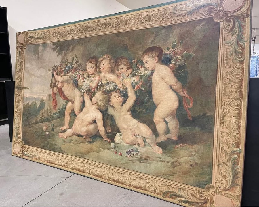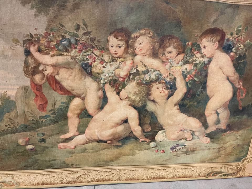 S2297 Cherubiny w kwiatach, Gobelin, XX w.