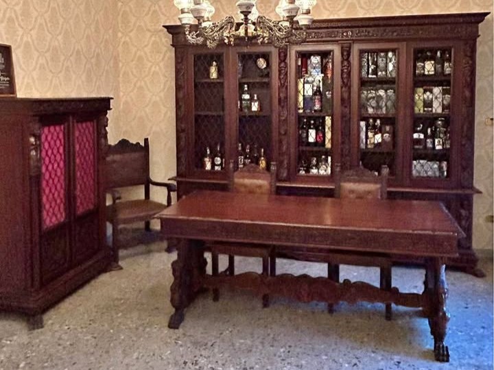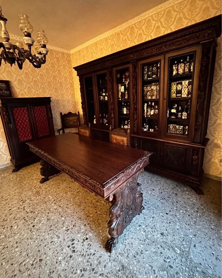 W skład kompletu wchodzi: para bibliotek, biurko, fotel, 2 x krzesło.
