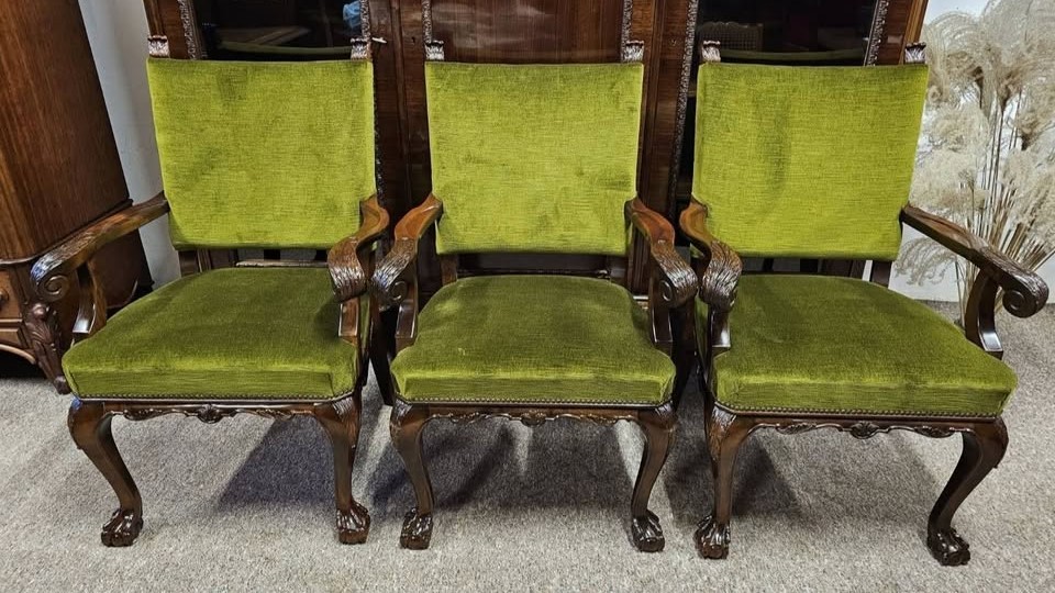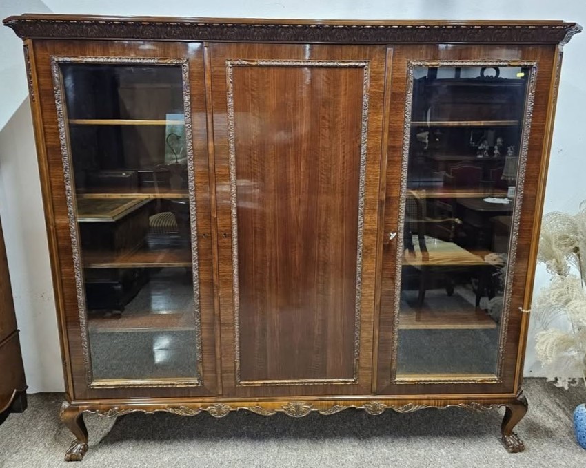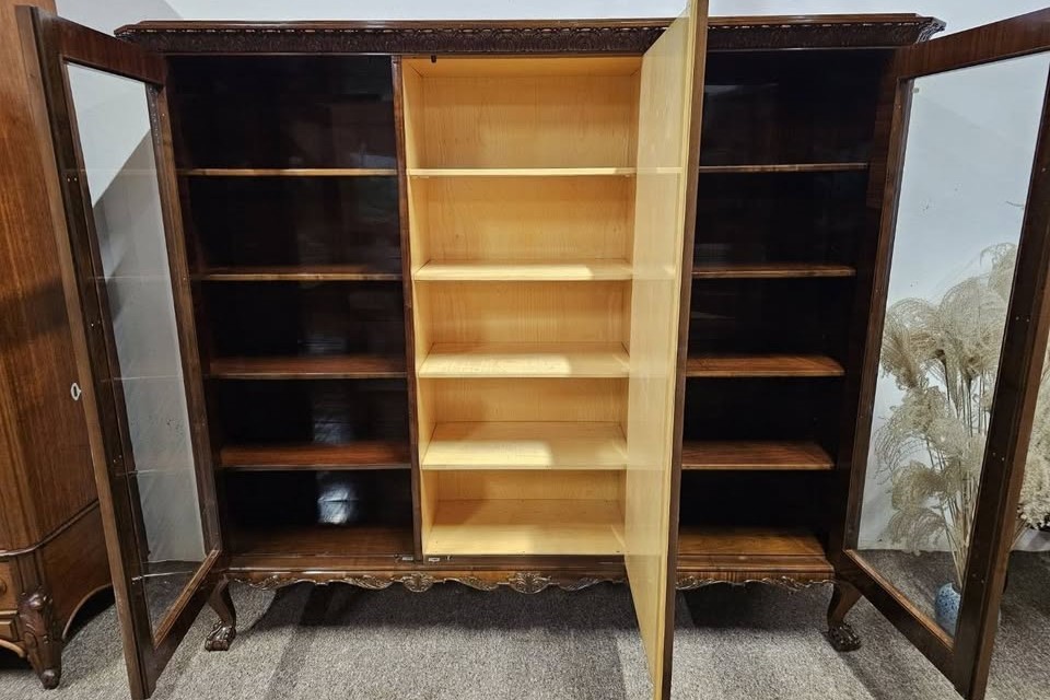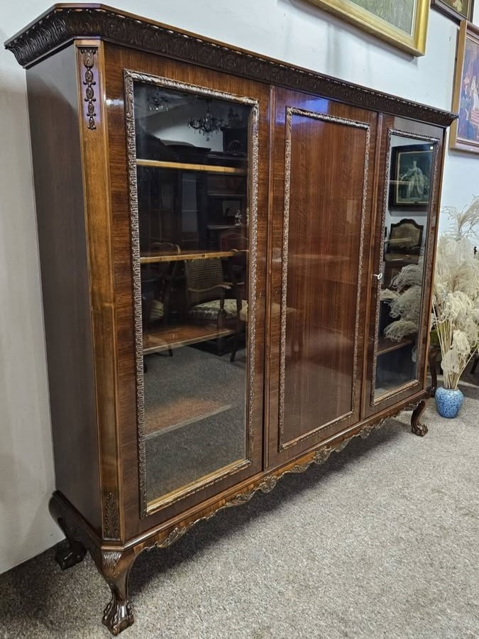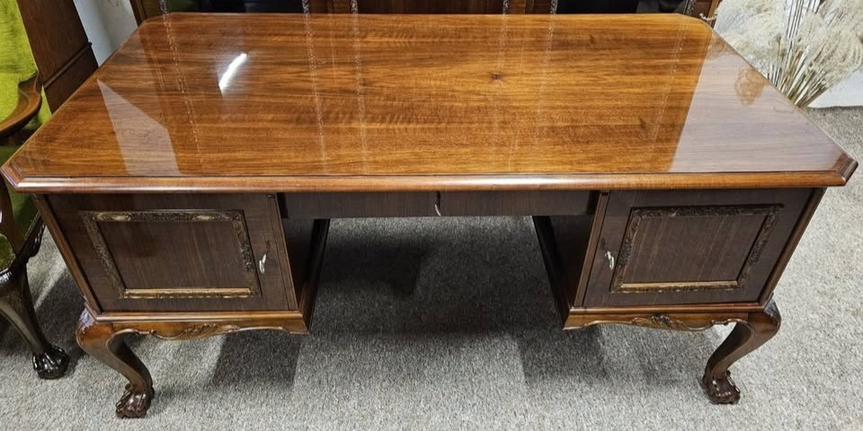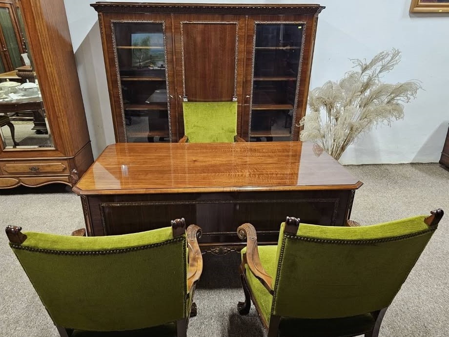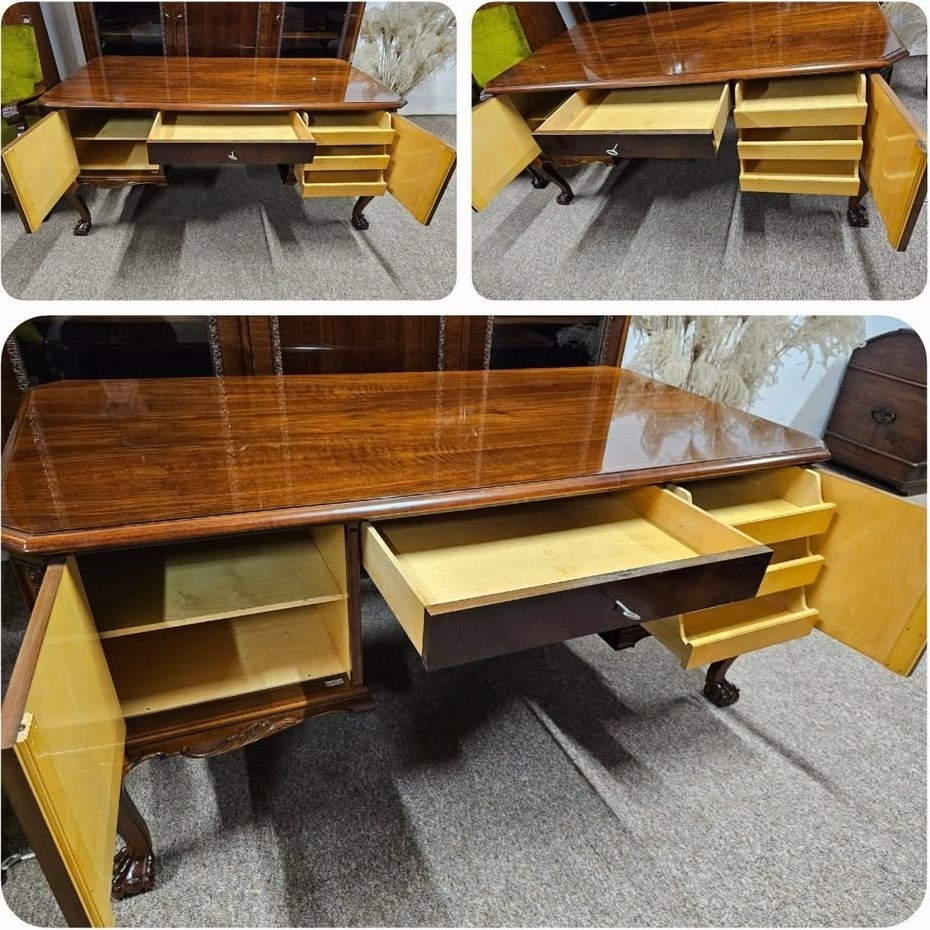W skład kompletu z drewna orzechowego wchodzi: biblioteka, biurko, 3 x fotek.