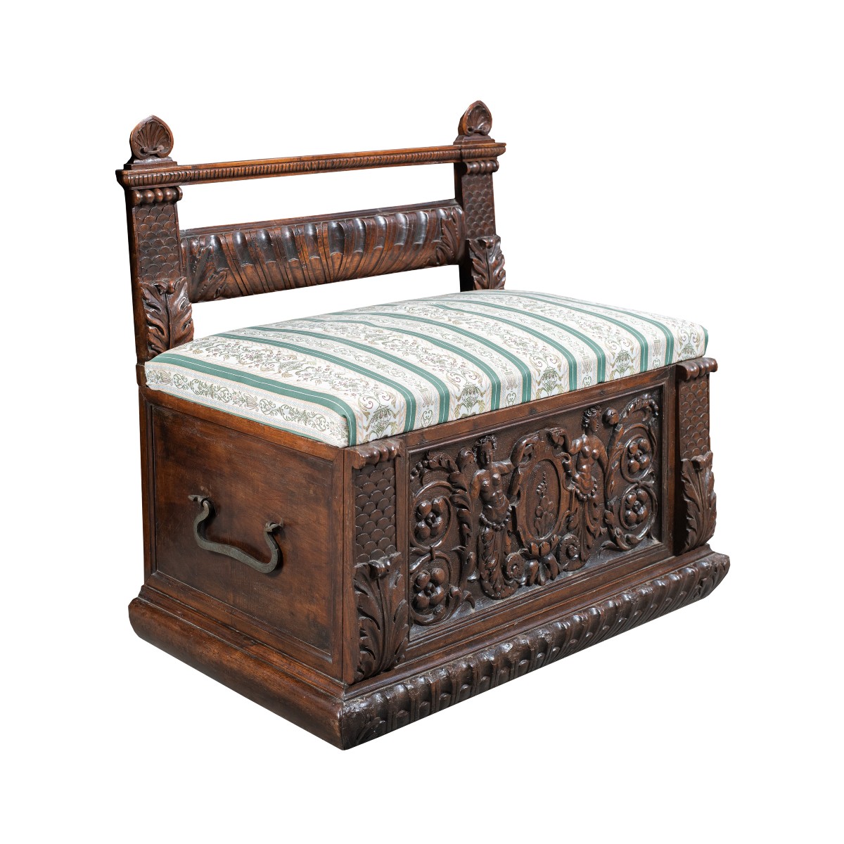 Rzeźbiona i wyrzeźbiona drewniana ławka z Włoch z XVII wieku to wyjątkowy przykład sztuki meblarskiej. Wykonana z dbałością o szczegóły, charakteryzuje się finezyjnymi zdobieniami oraz solidną konstrukcją. Doskonała do eleganckich wnętrz, stanowi nie tylko funkcjonalny element, ale także artystyczną ozdobę przestrzeni.
