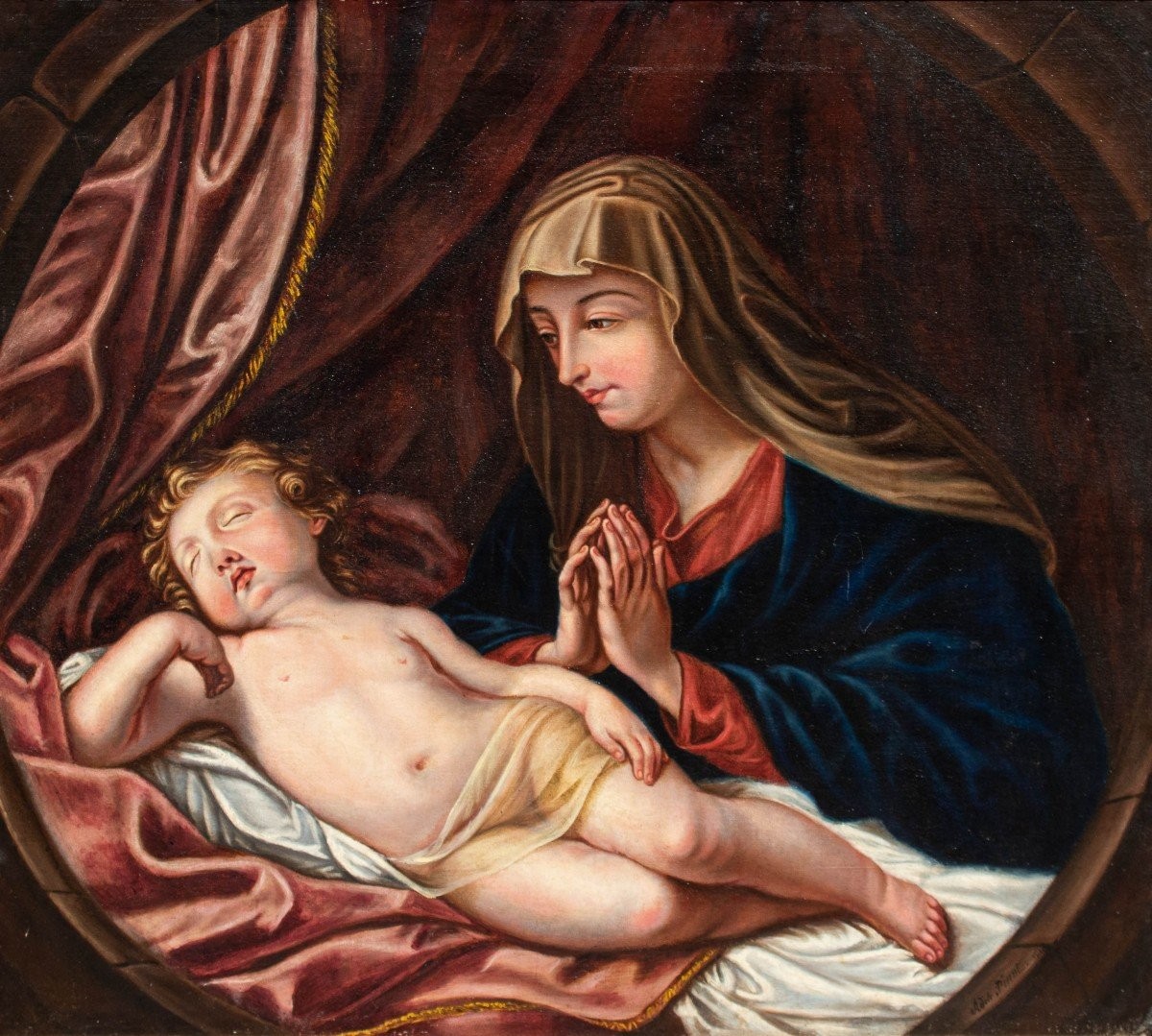 S2532 Madonna i śpiące Dzieciątko, Olej na płótnie, XIX w.