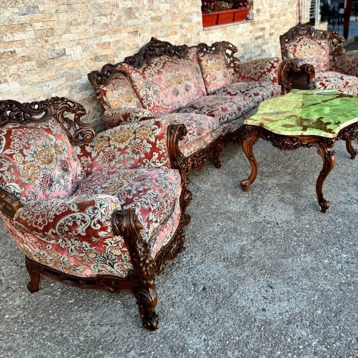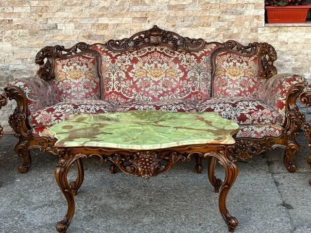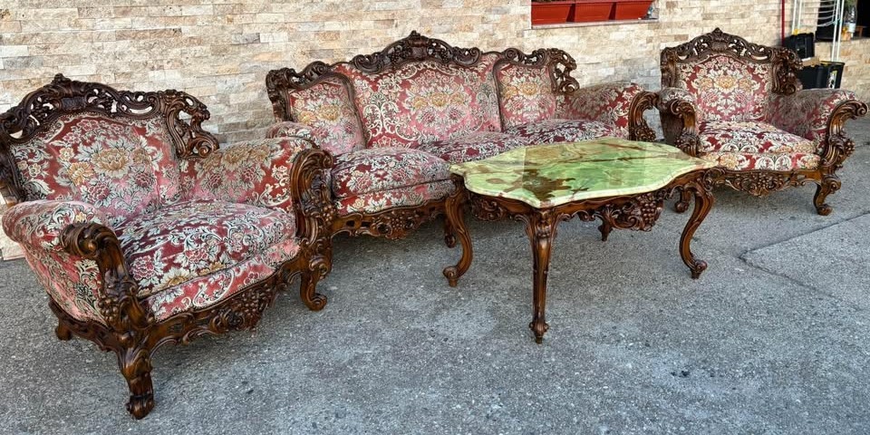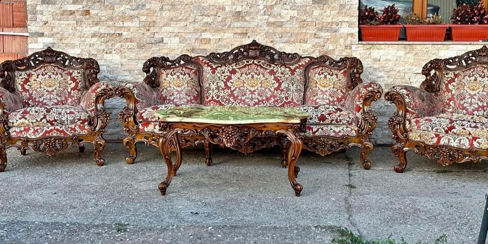 W skład kompletu wchodzi: sofa, 2 x fotel, stolik do kawy.