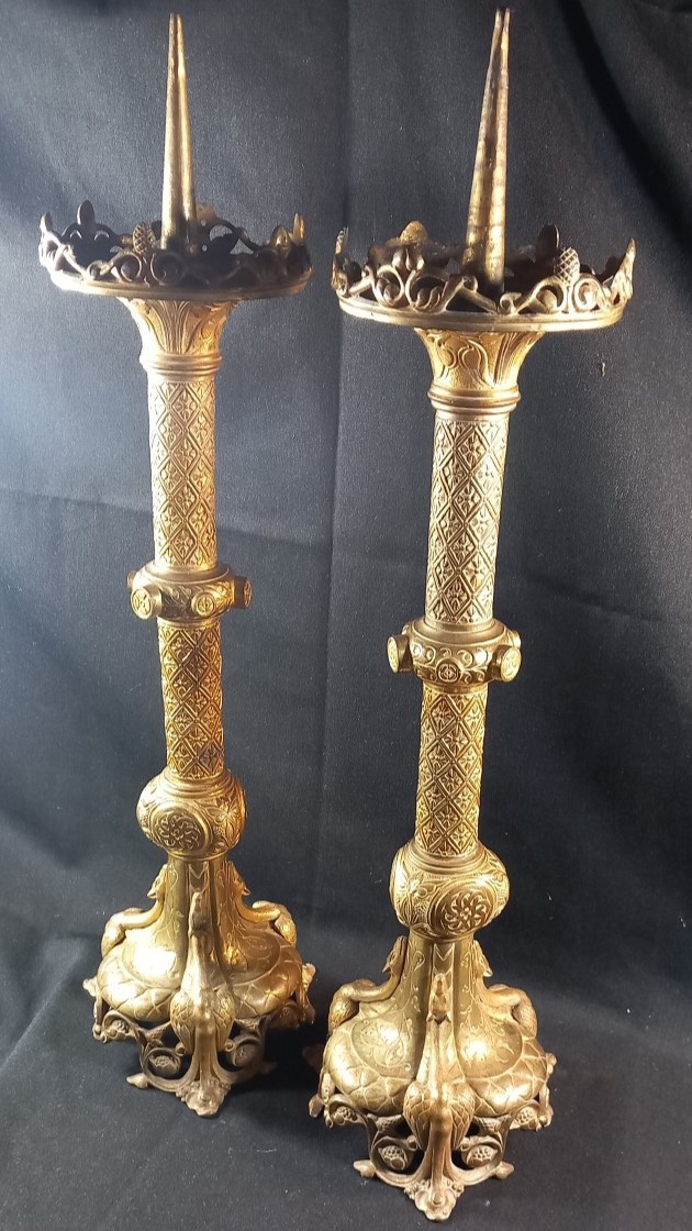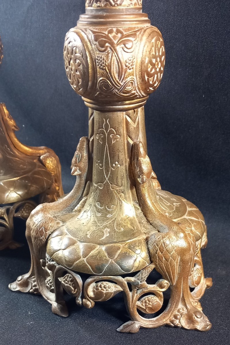S2551 2 x Lichtarz z chimerami i gargulcami, XIX w.