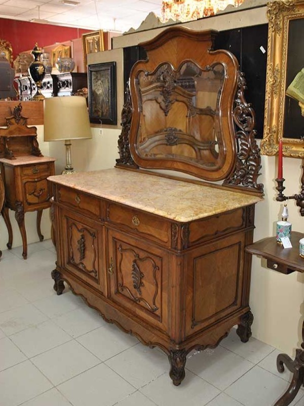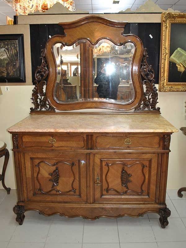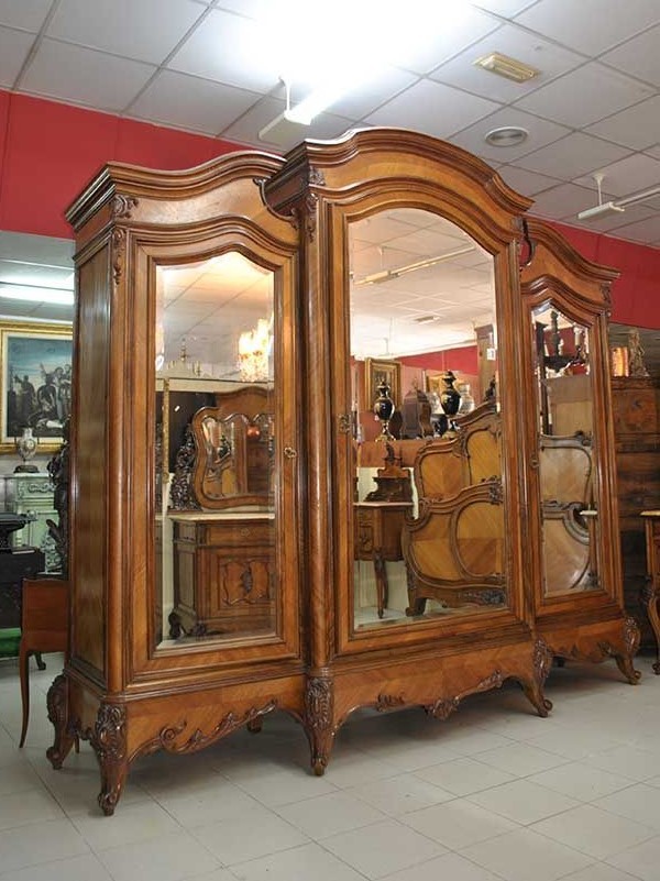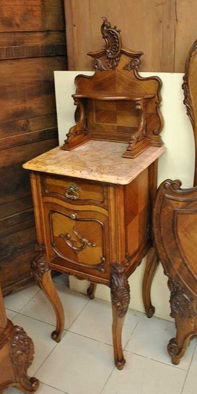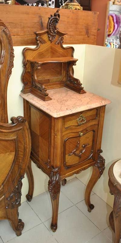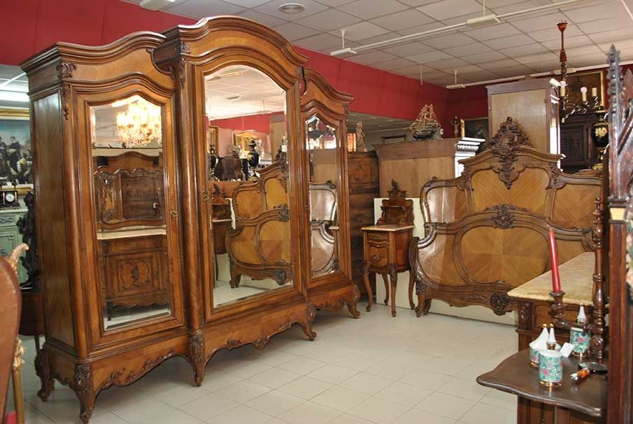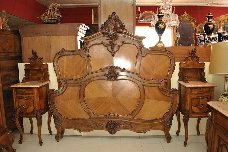 W skład kompletu z drewna orzechowego wchodzi: łoże, 2 x szafka nocna, szafa, komoda z lustrem.