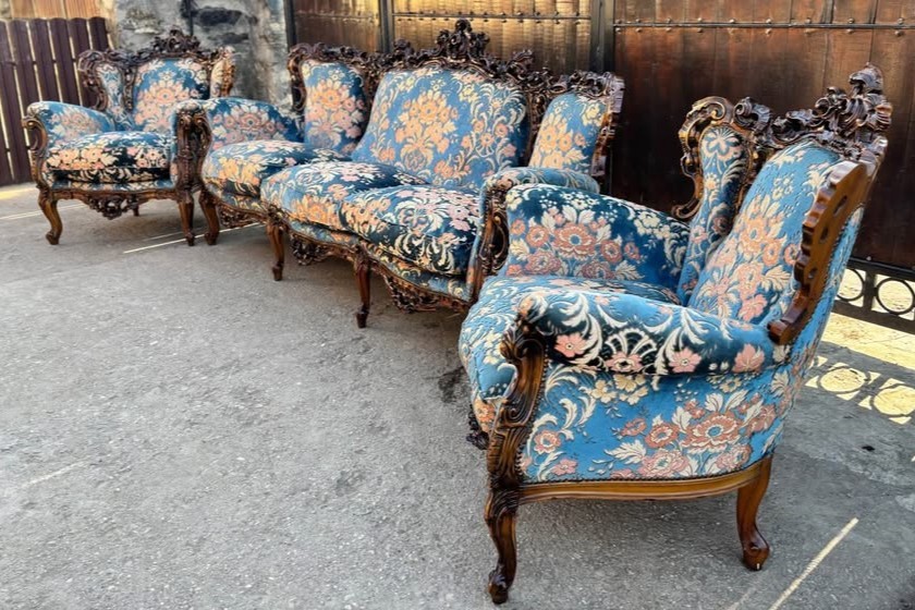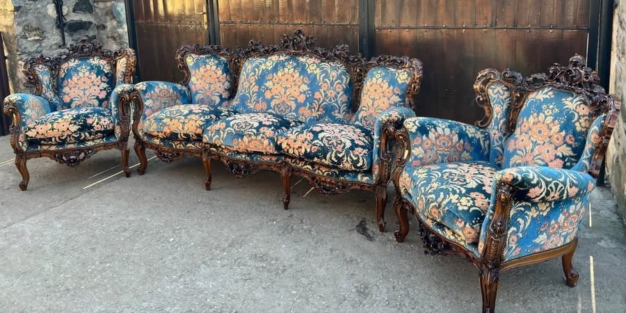 W skład kompletu wchodzi: sofa, 2 x kredens.