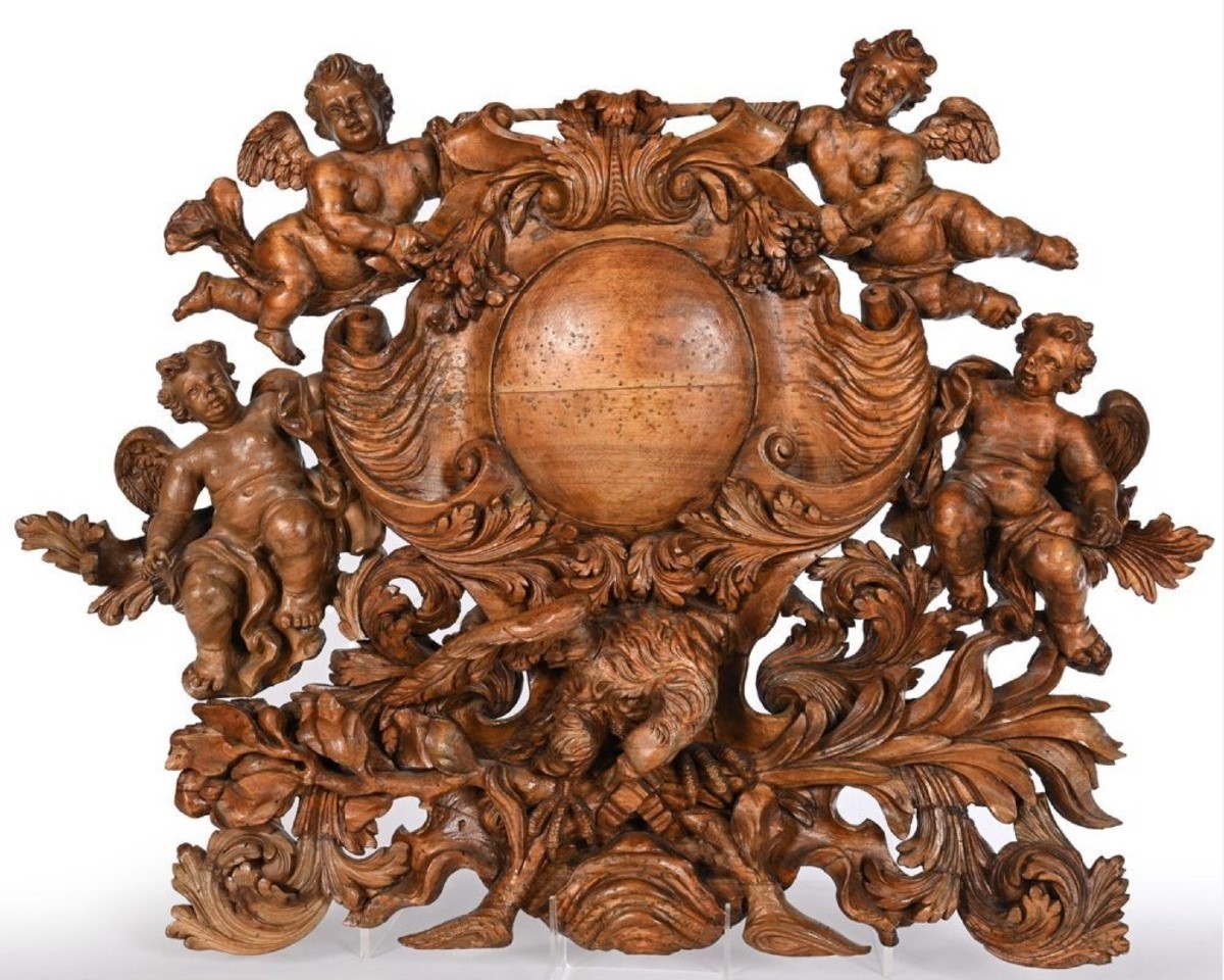 S2580 Medalion otoczony cherubami, Rzeźba, XVIII w.