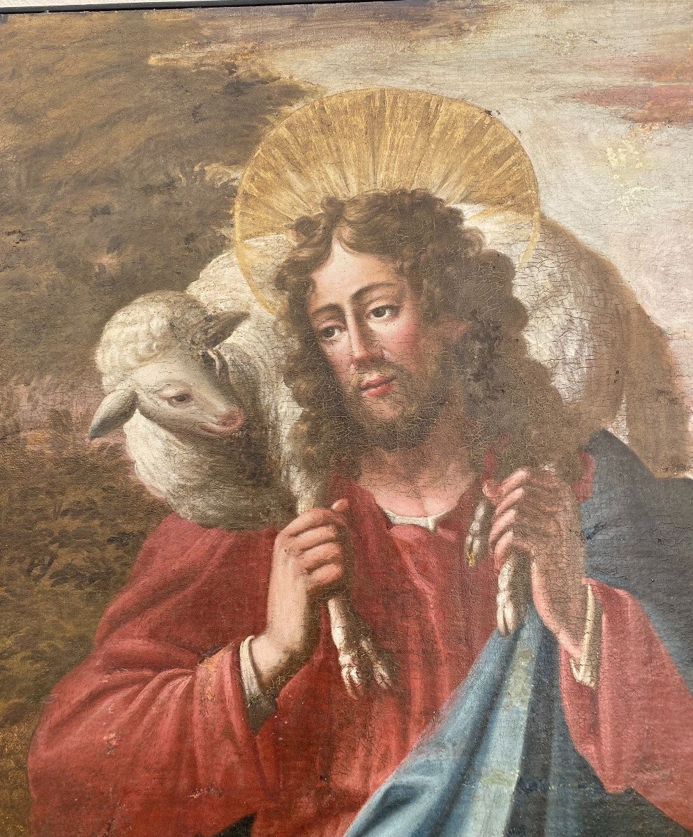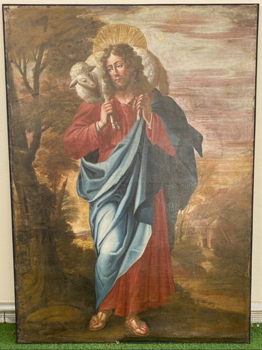 S2581 Dobry Pasterz, Duży olej na płótnie, XVIII w.