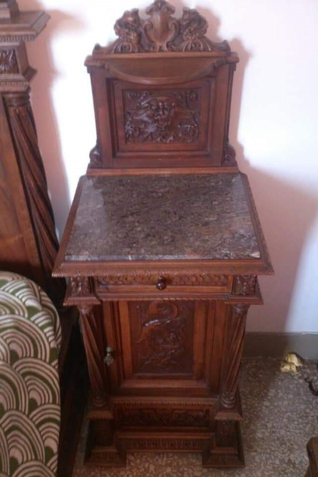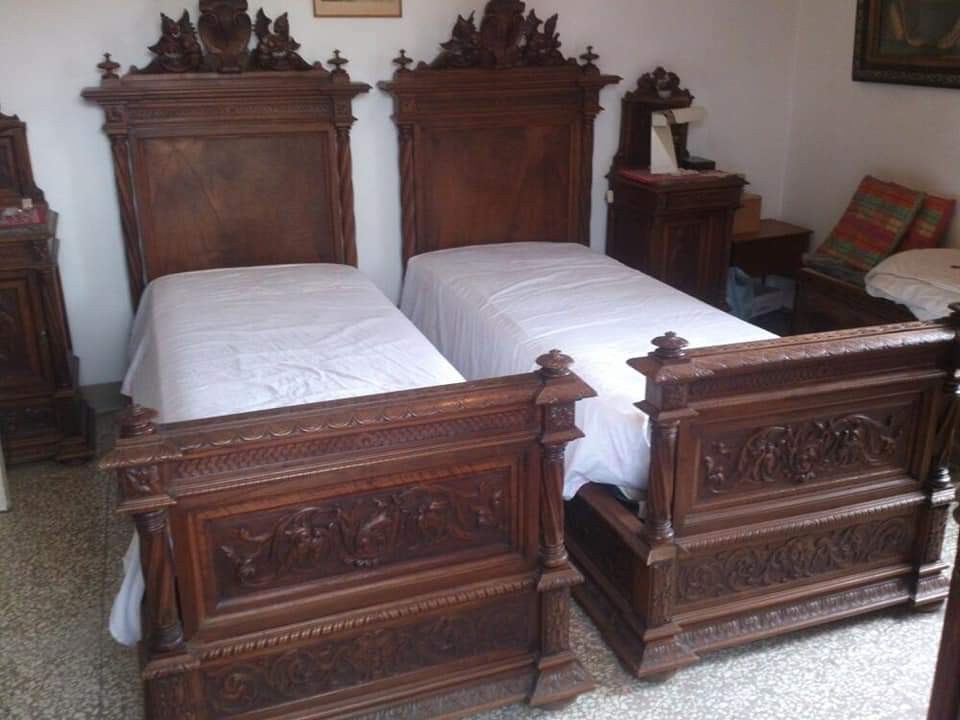 W skład kompletu wchodzi: 2 x łóżko, 2 x szafka nocna, szafa, szafka na bieliznę.