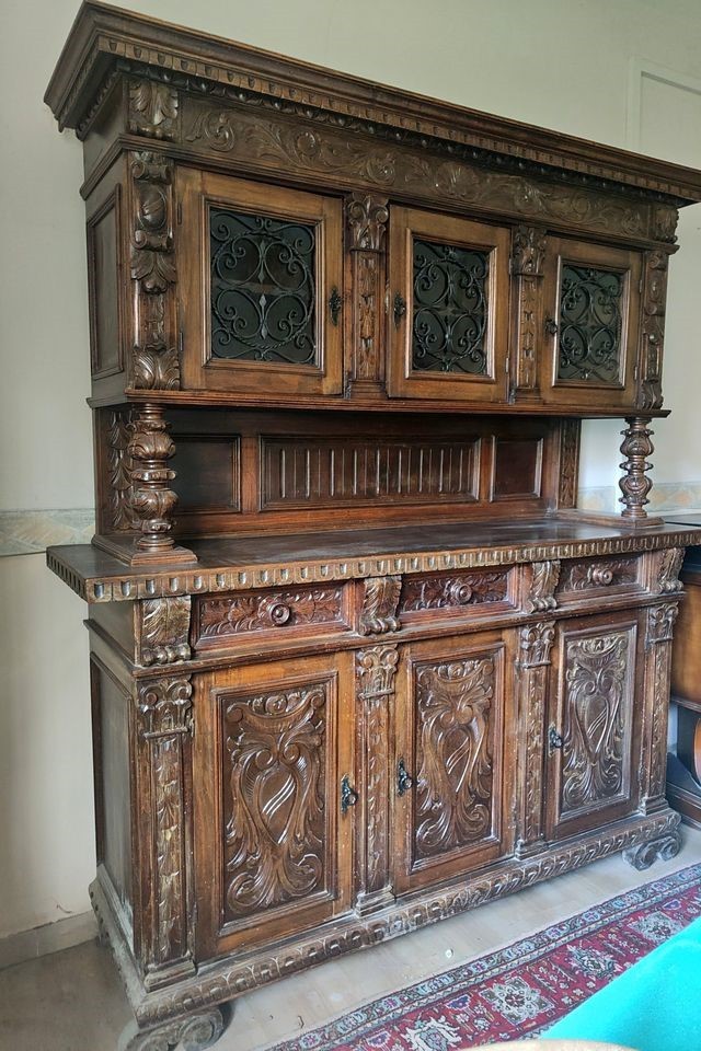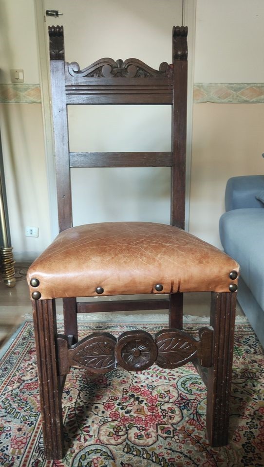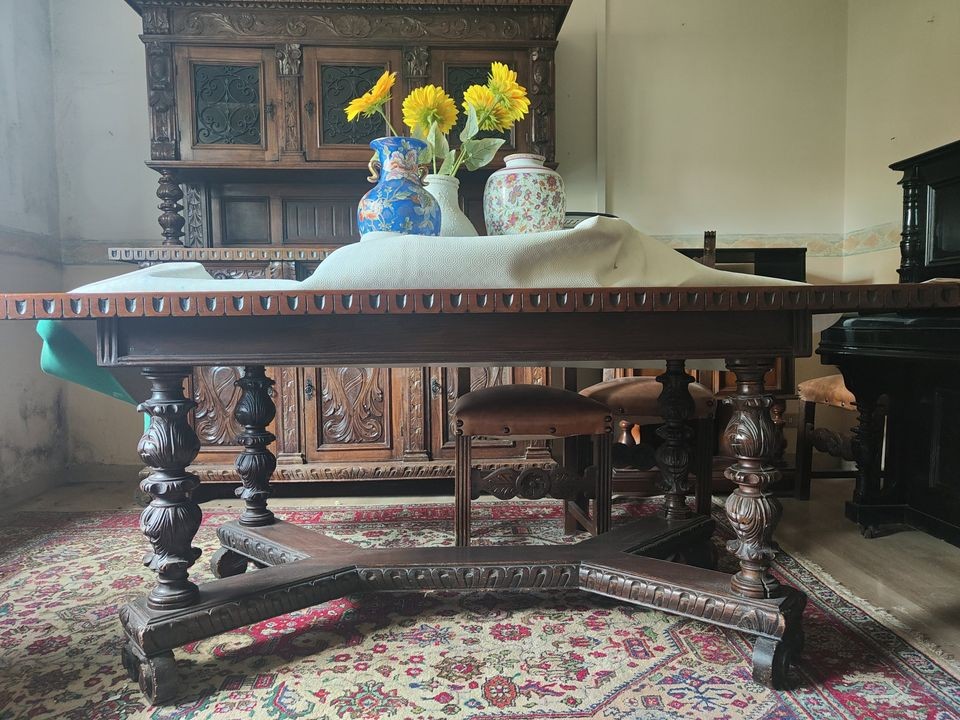 W skład kompletu wchodzi: kredens, pomocnik, stół, 6 x krzesło.