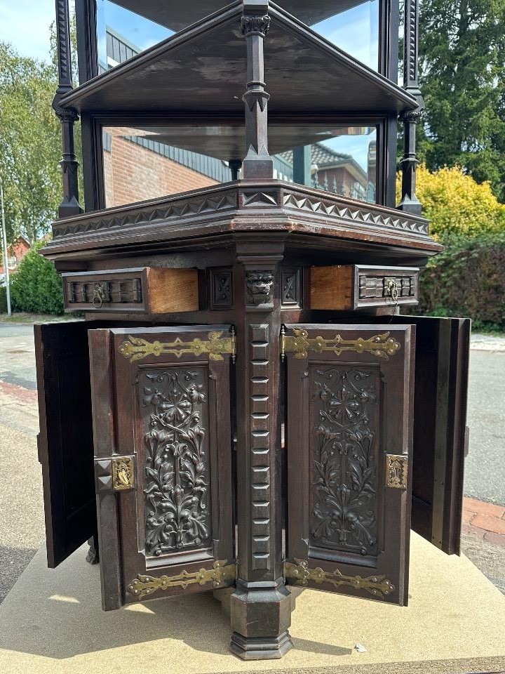 Materiał: Drewno, szkło, mosiądz, brąz