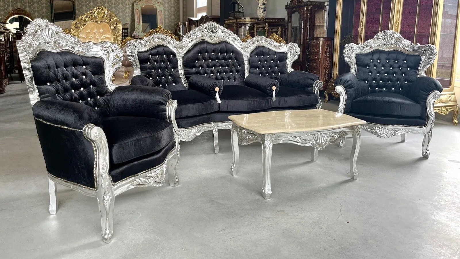 S2883 Czarny barokowy zestaw wypoczynkowy
