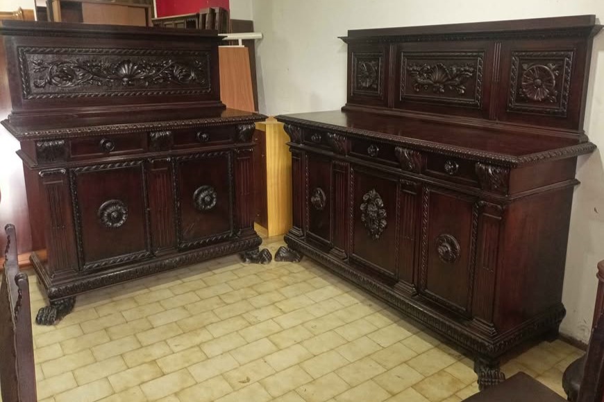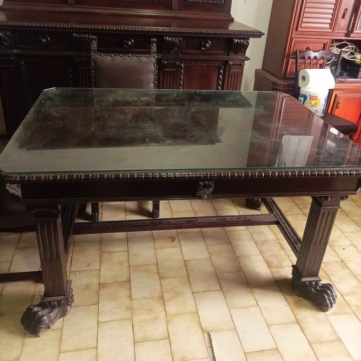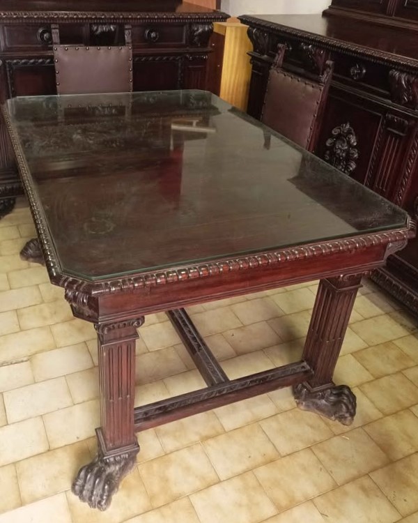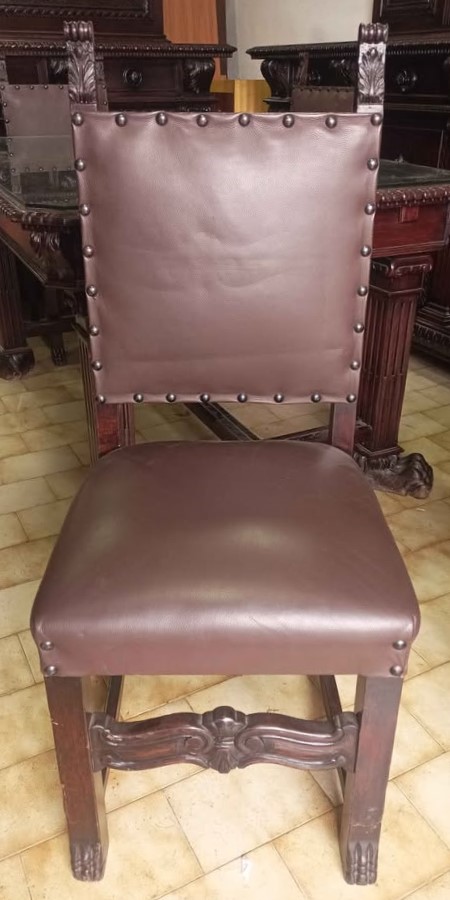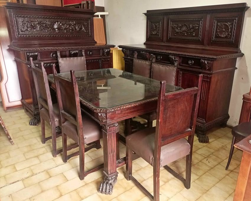 W skład kompletu z drewna wchodzi: para pomocników, stół, 6 x krzesło.