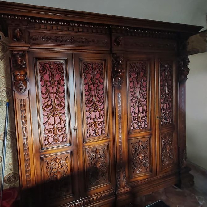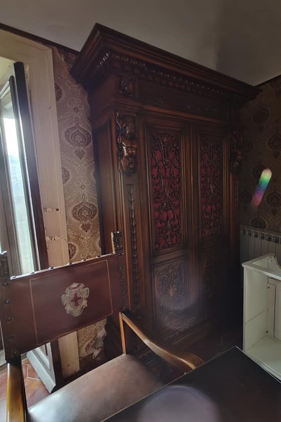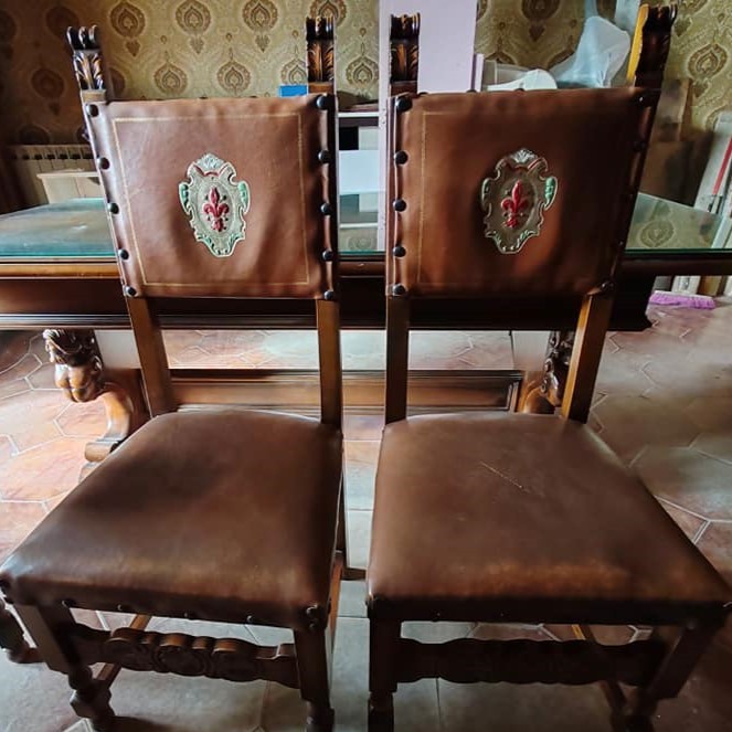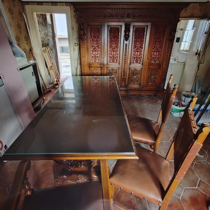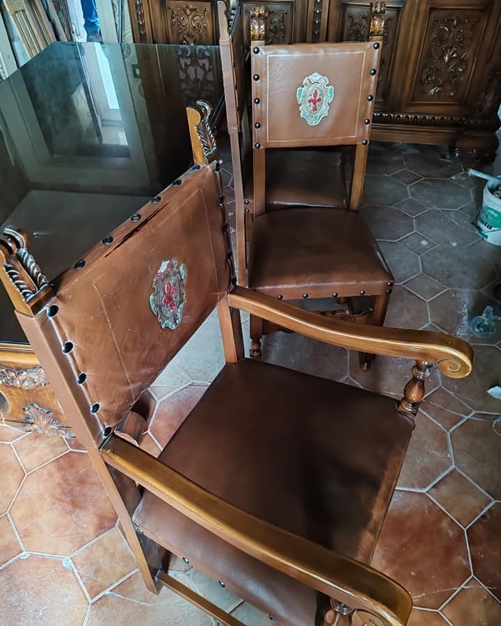W skład kompletu wchodzi: duża i mała biblioteka, biurko, krzesło z podłokietnikami, 2 x krzesło.