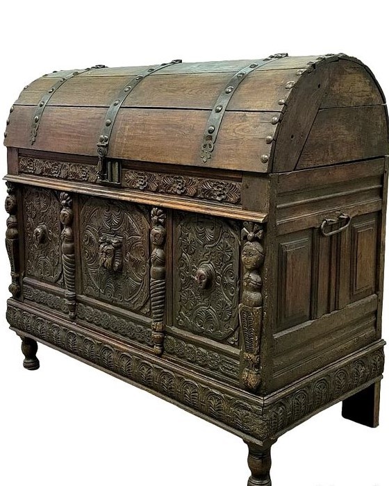 S3049 Kufer z lwimi pyskami i kariatydami, XV w.