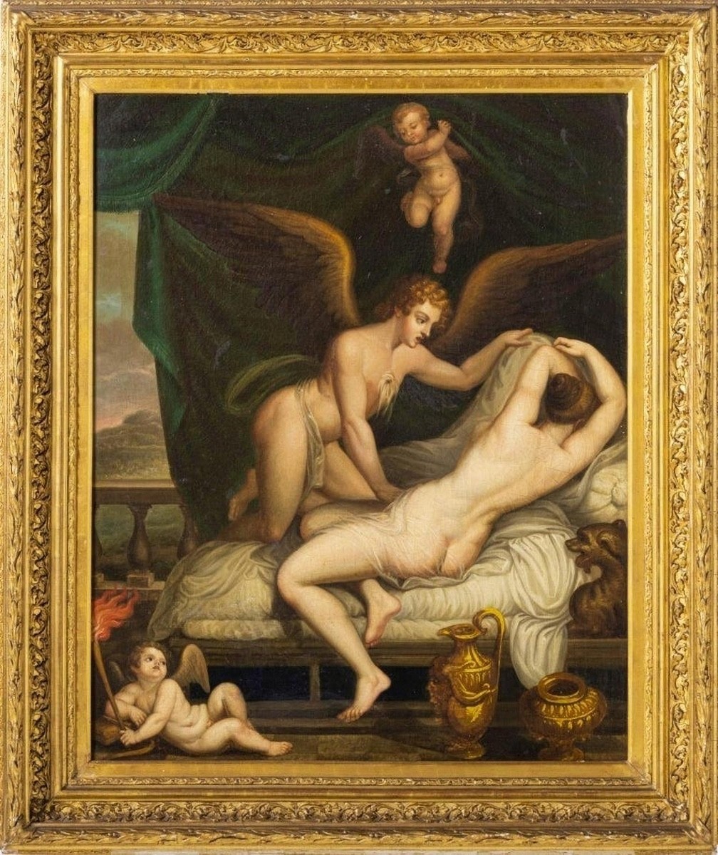 S3235 Wenus i Kupidyn, Olej na drewnie, XIX w.