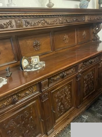W skład kompletu wchodzi: kredens, pomocnik, stół, 6 x krzesło.
