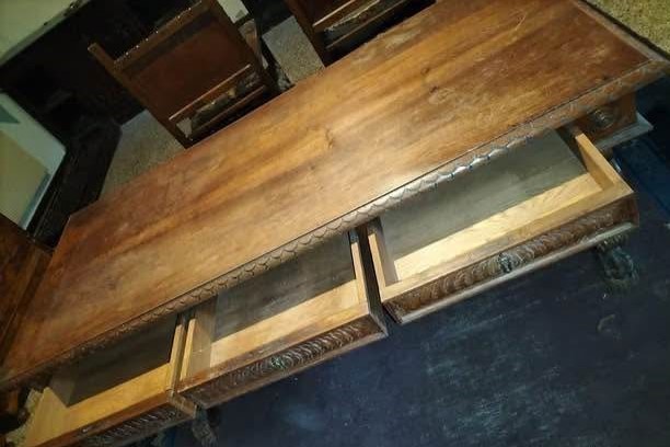 S3276 Neogotycki stół/biurko na lwich łapach, XX w.