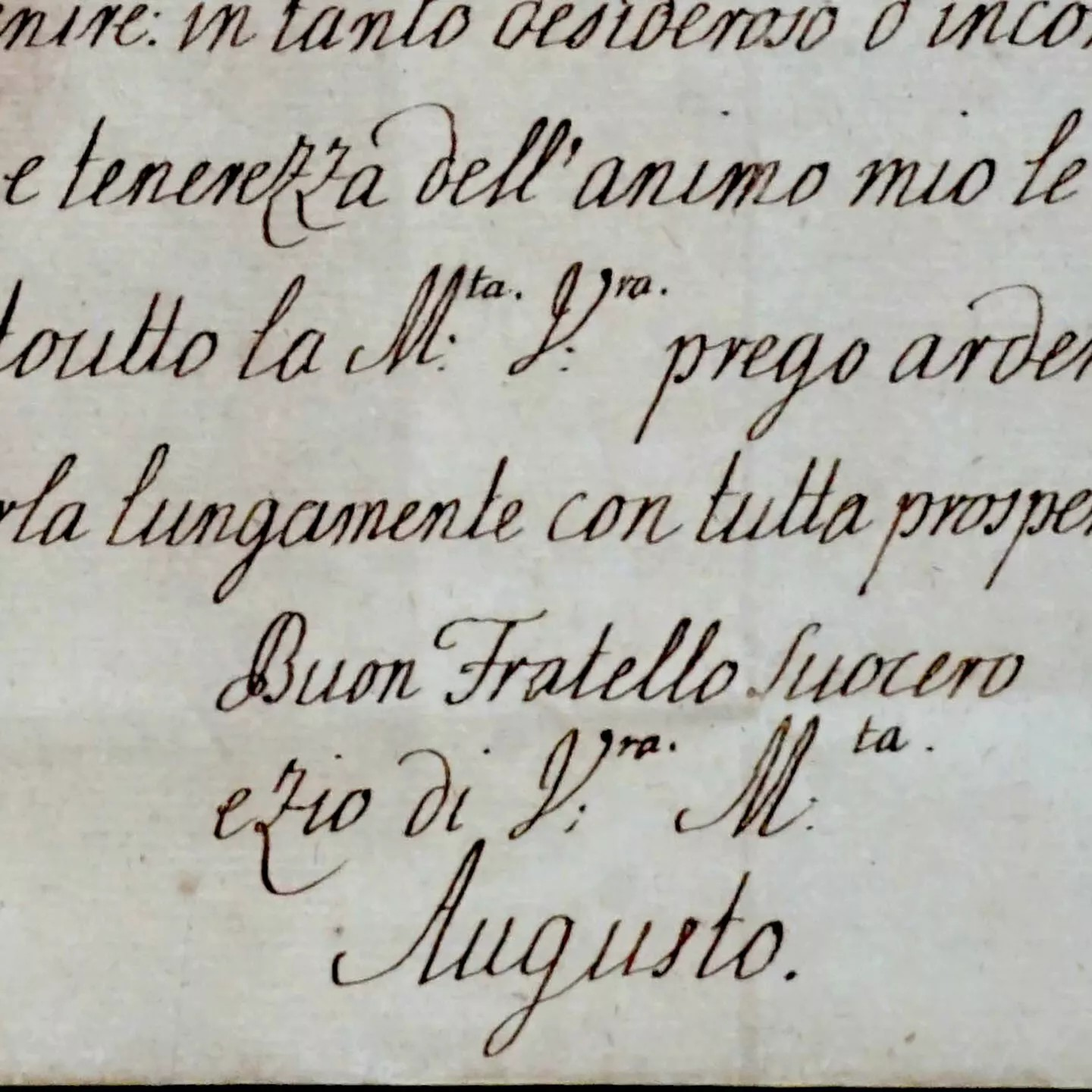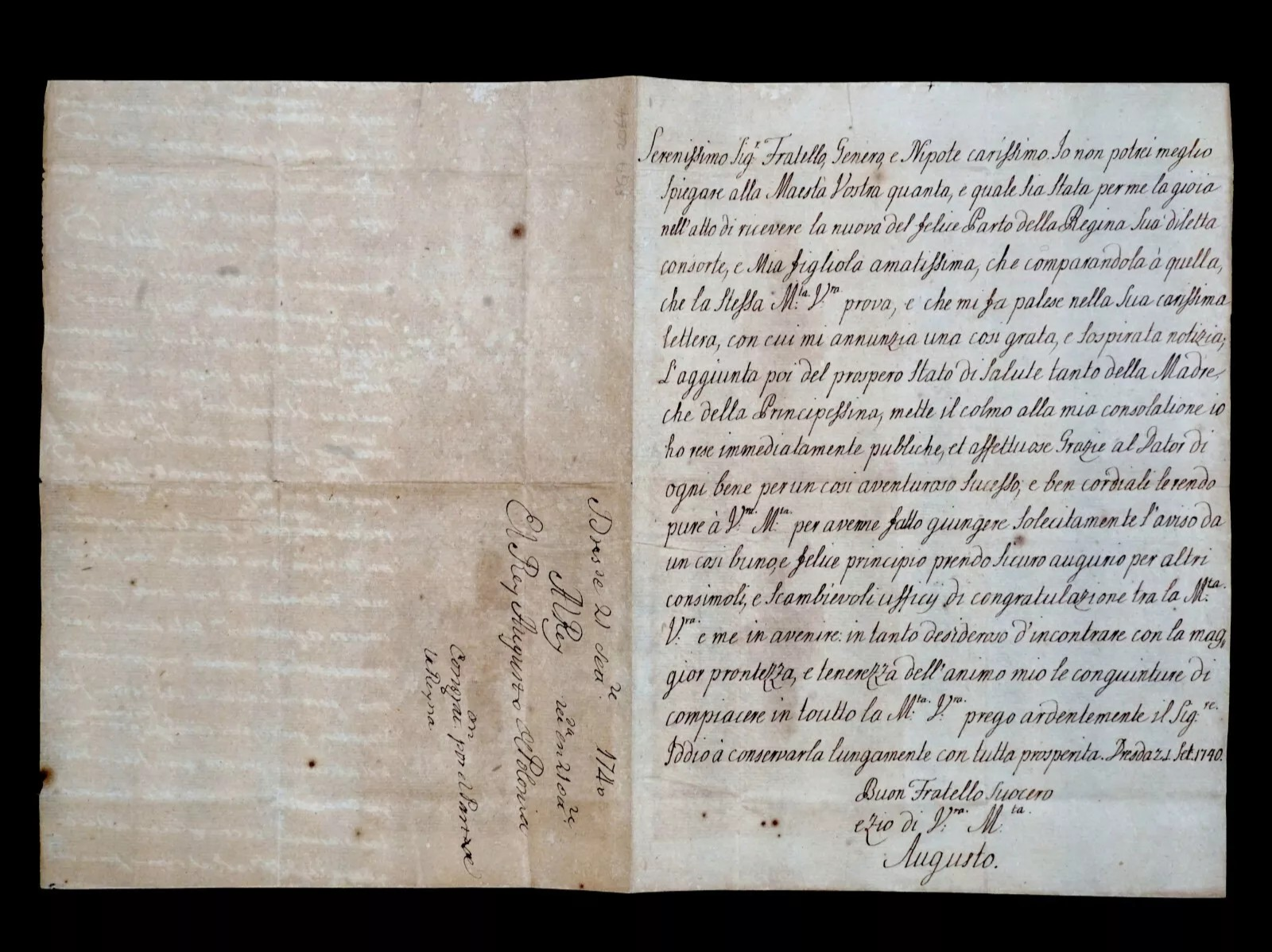 List króla Augusta III do Karola III napisany w języku włoskim.