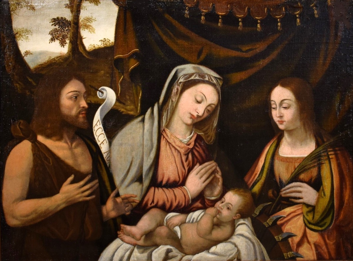 Madonna modląca się nad Dzieciątkiem pomiędzy świętymi Janem Chrzcicielem i Katarzyną Aleksandryjską