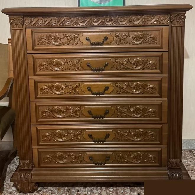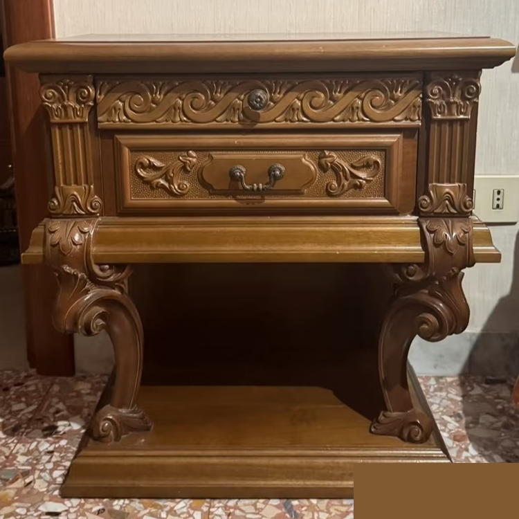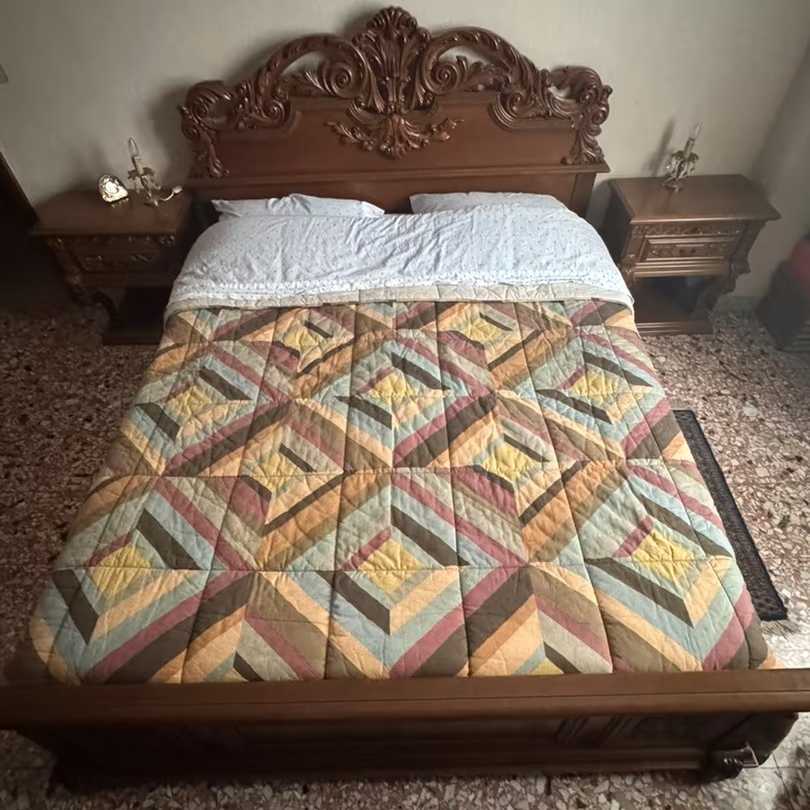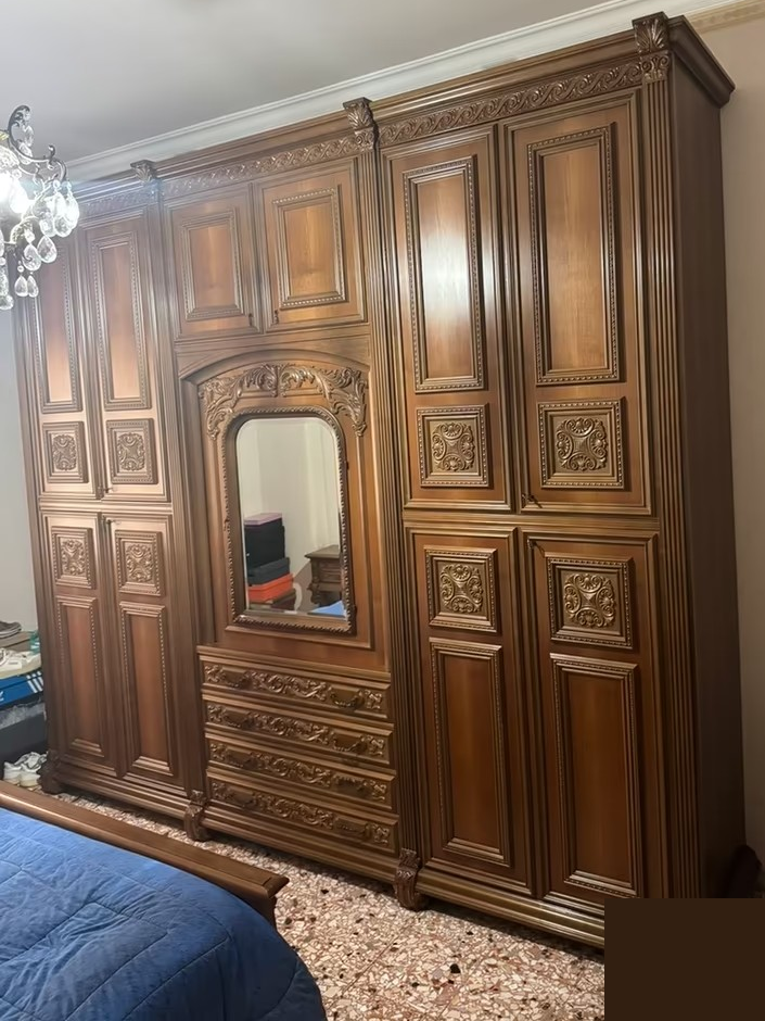 W skład kompletu wchodzi: łoże, 2 x szafka nocna, szafa z lustrem, komoda.