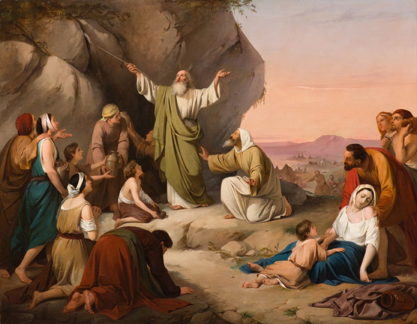 S3355 Mojżesz czerpiący wodę ze skały, Duży olej na płótnie, XIX w.