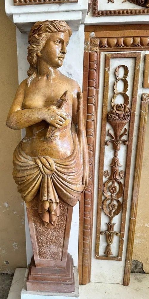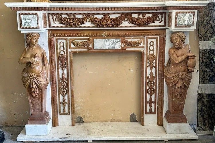 S3374 Neoklasycystyczny kominek z kariatydami, XIX w.