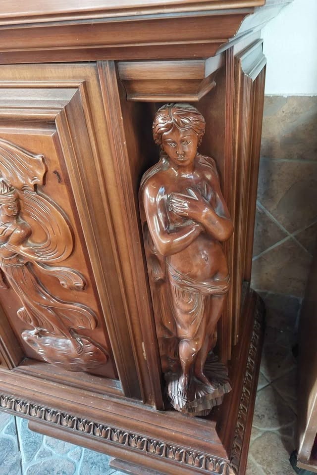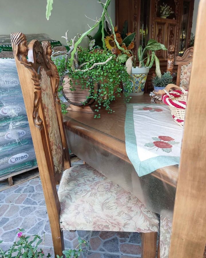 W skład kompletu wchodzi: kredens, stół, 6 x krzesło.