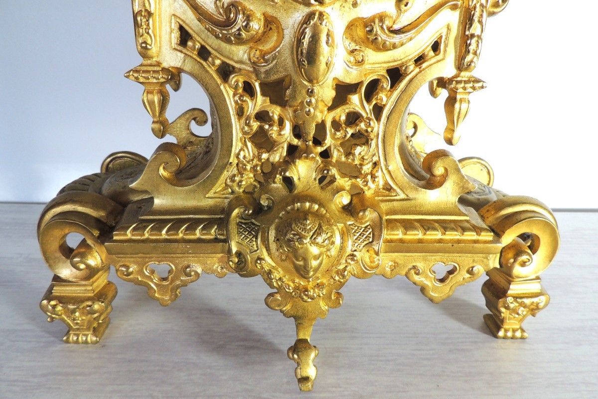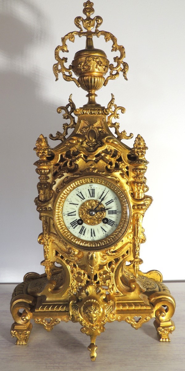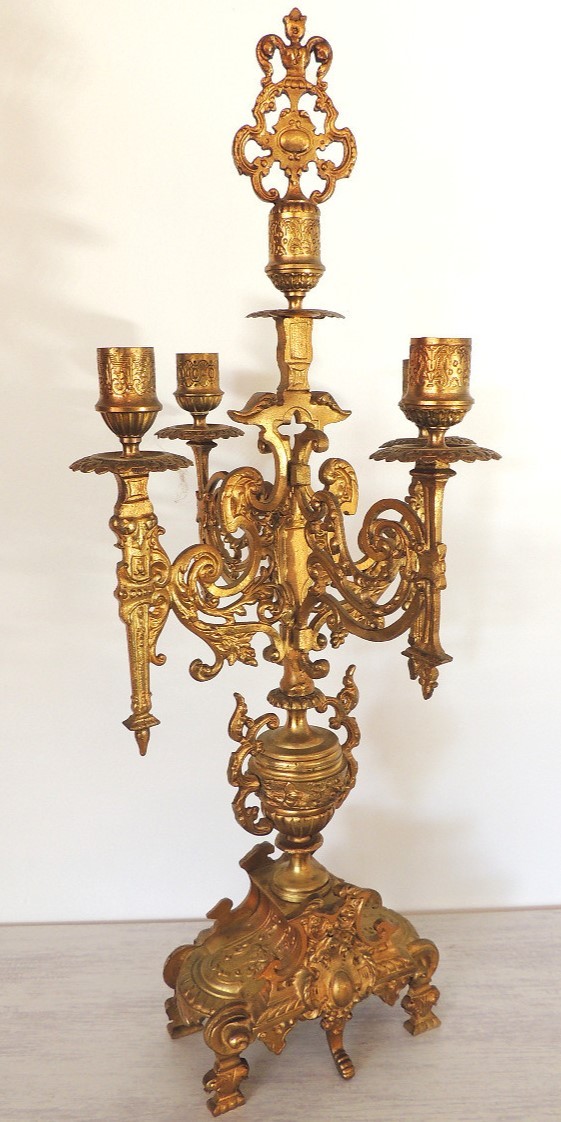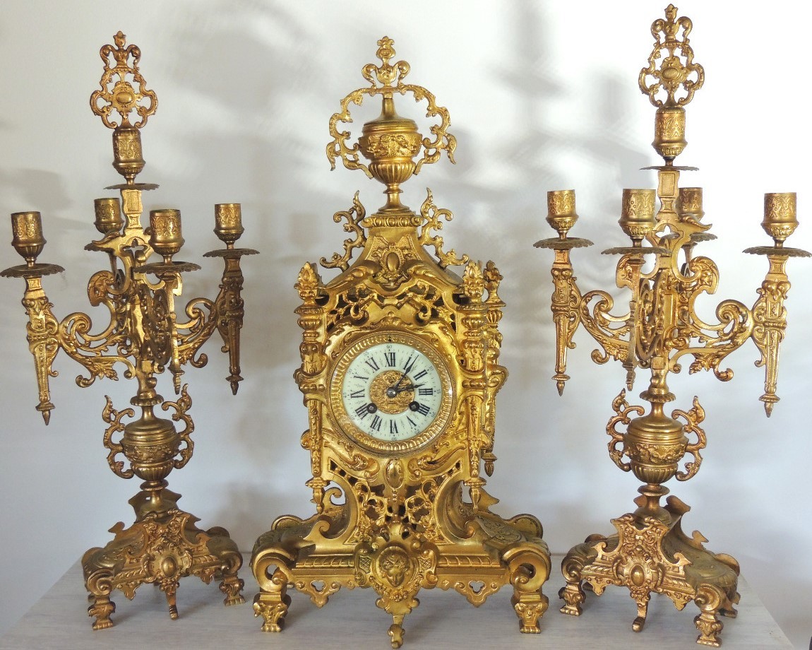 W skład kompletu z brązu wchodzi: zegar, 2 x kandelabr.