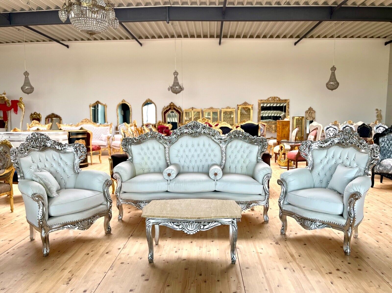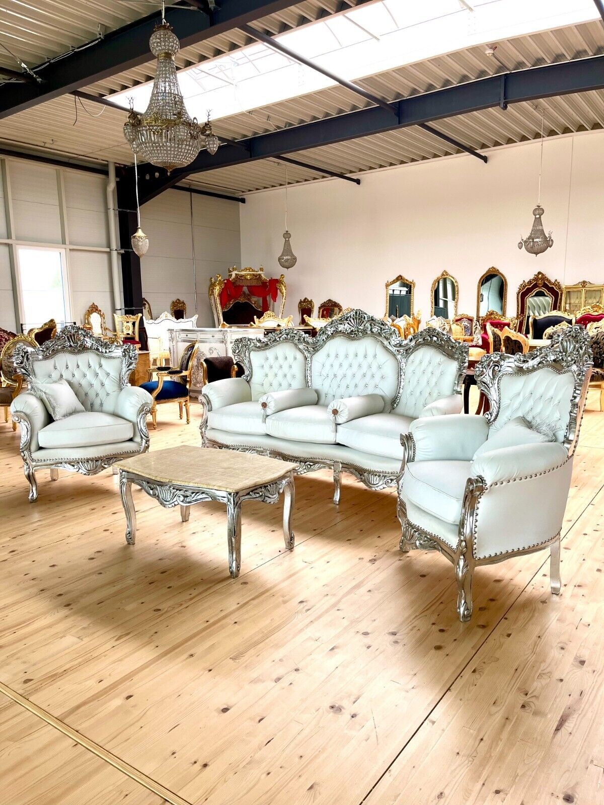 W skład kompletu wchodzą: sofa 3-osobowa, 2 x fotel, stolik do kawy.