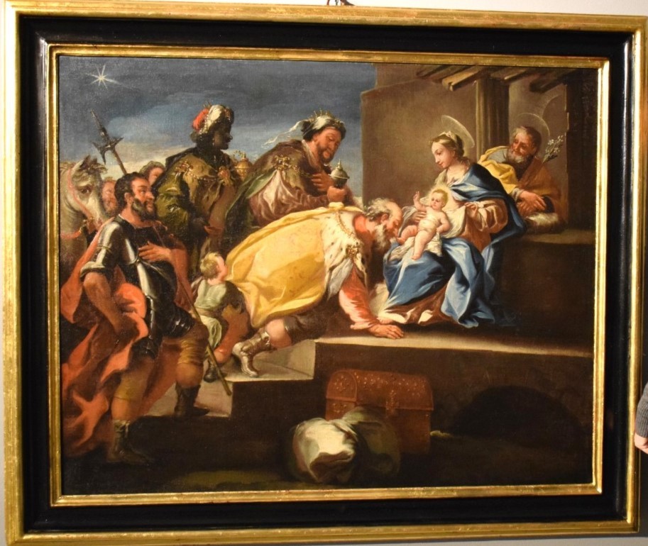 S3473 Pokłon Trzech Króli, Duży olej na płótnie, XVII w.