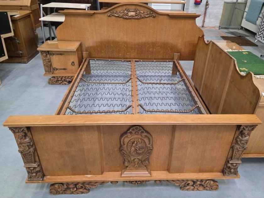 W skład kompletu wchodzi: łoże, 2 x szafka nocna, szafa, komoda.
